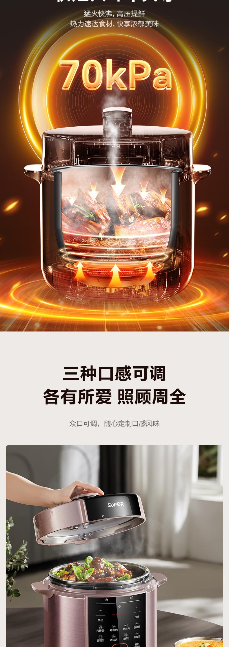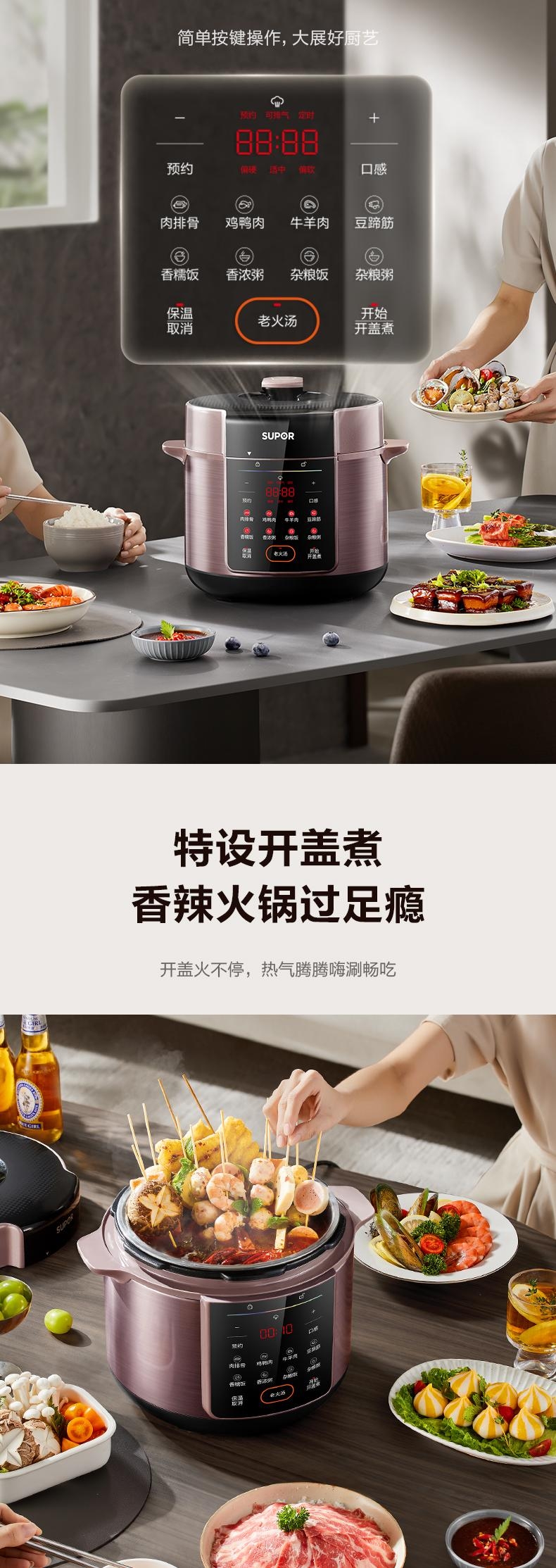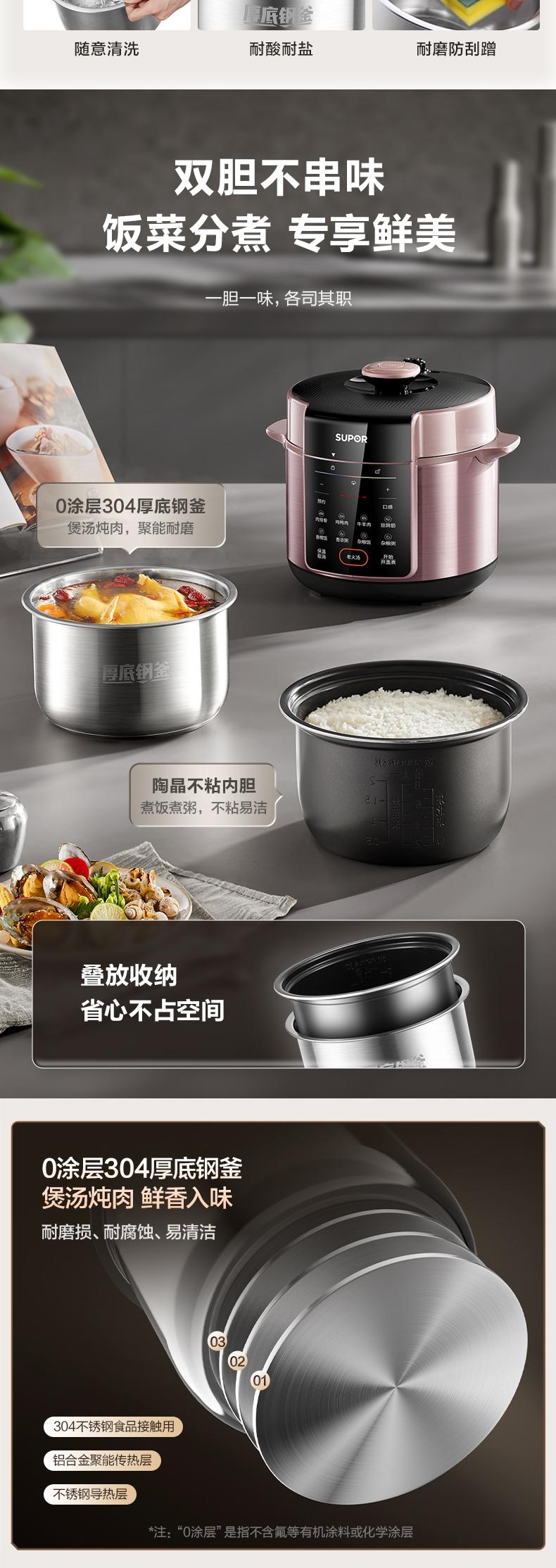 5L大容量,容纳多人大胃口;304不锈钢钢胆,更健康;11大功能菜单,大屏便捷操作