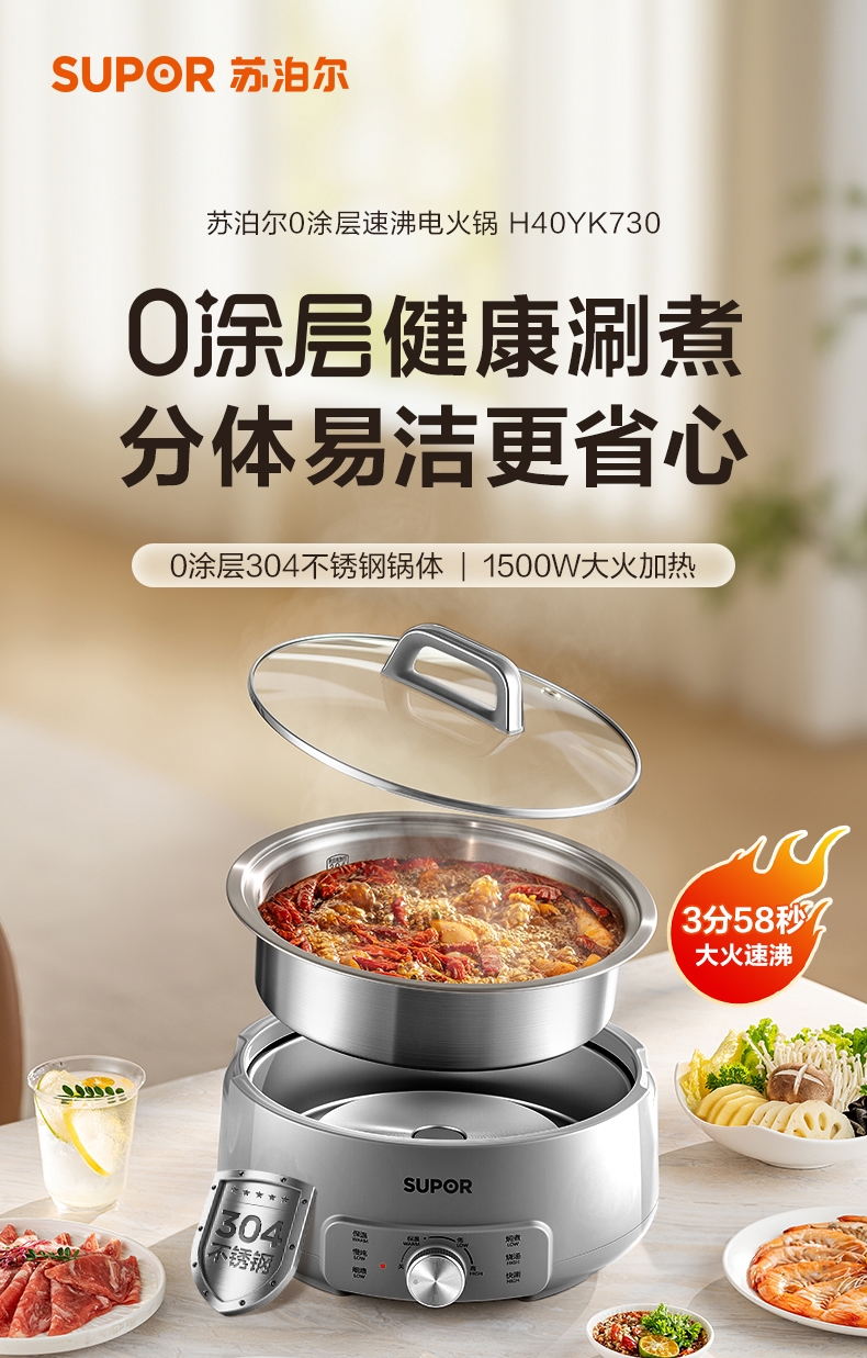 苏泊尔 0涂层速沸电火锅4LH40YK730