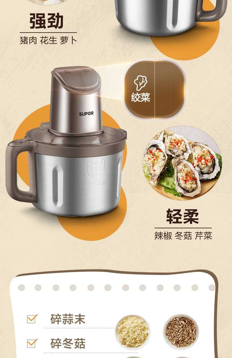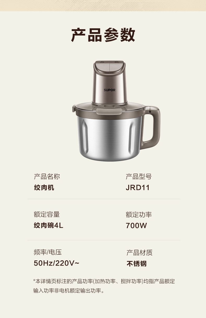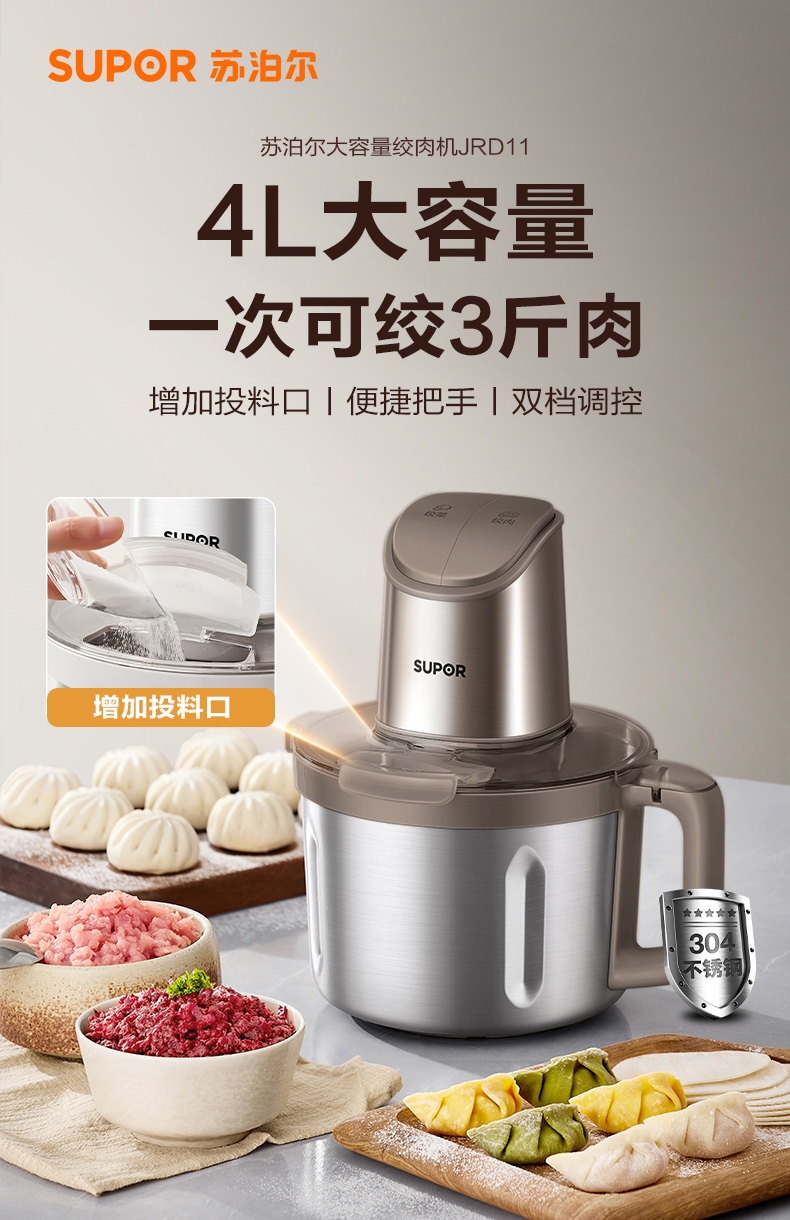 苏泊尔 全钢4L大容量绞肉机JRD11