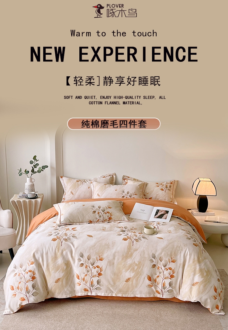 啄木鸟 纯棉磨毛四件套-叶语ZMN-CMMM15