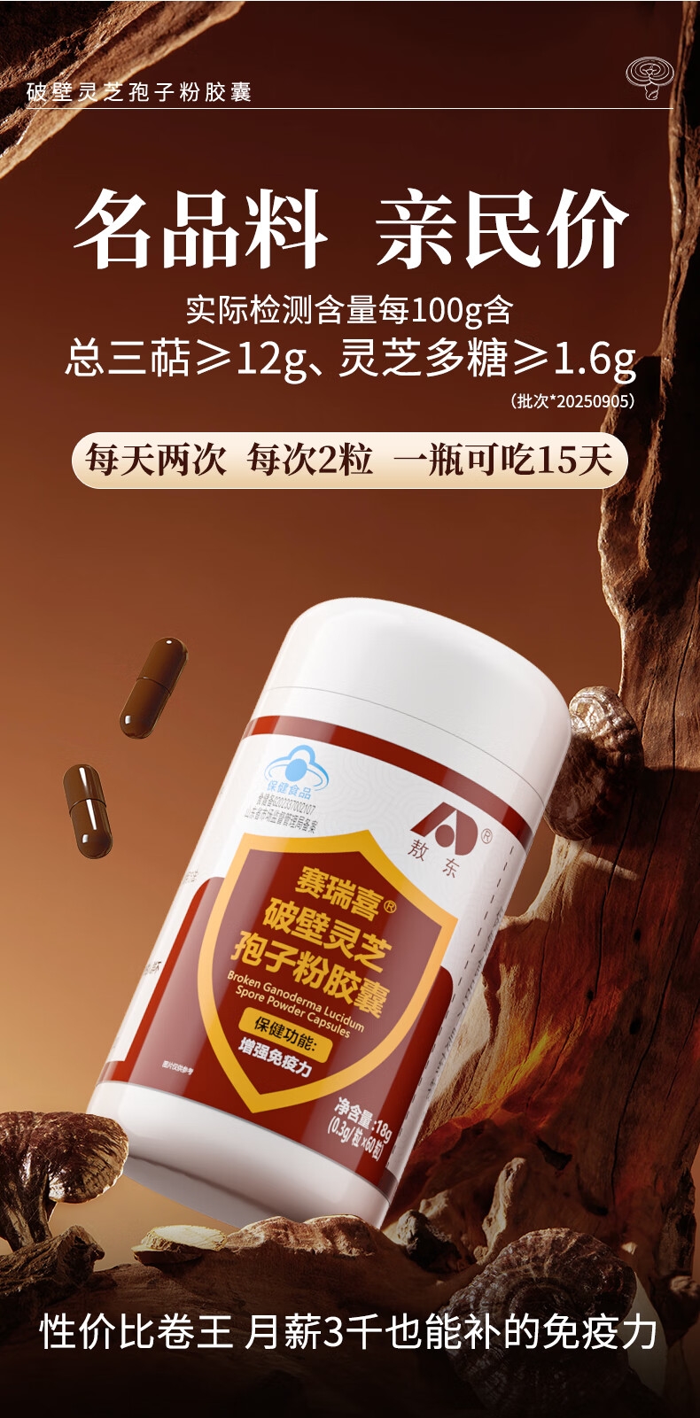 敖东 赛瑞喜灵芝孢子粉胶囊18g