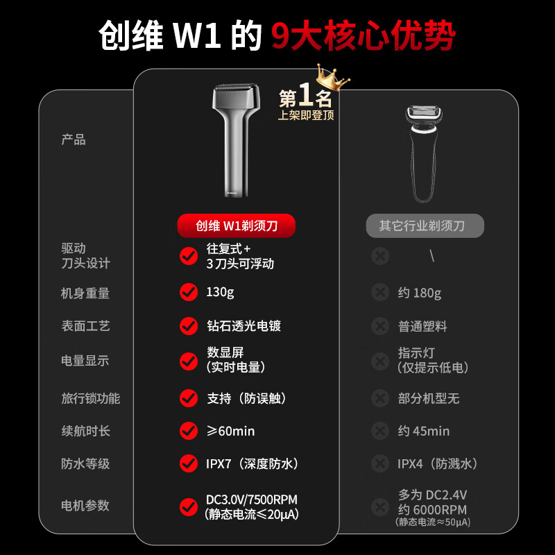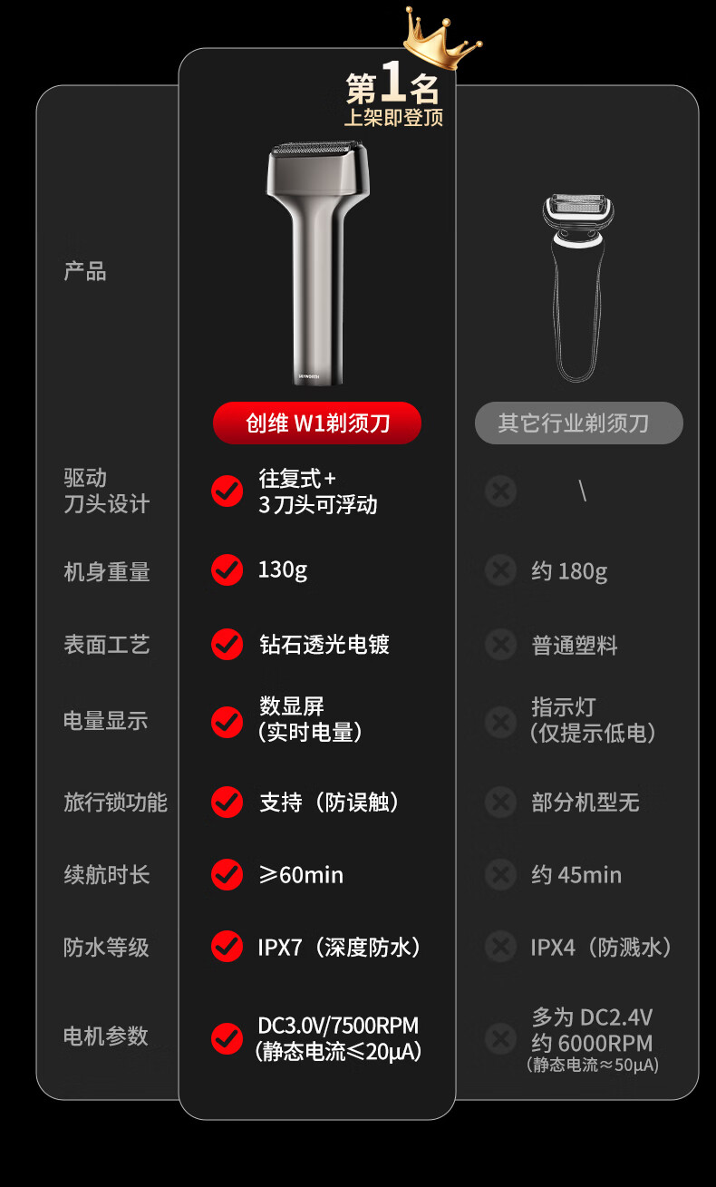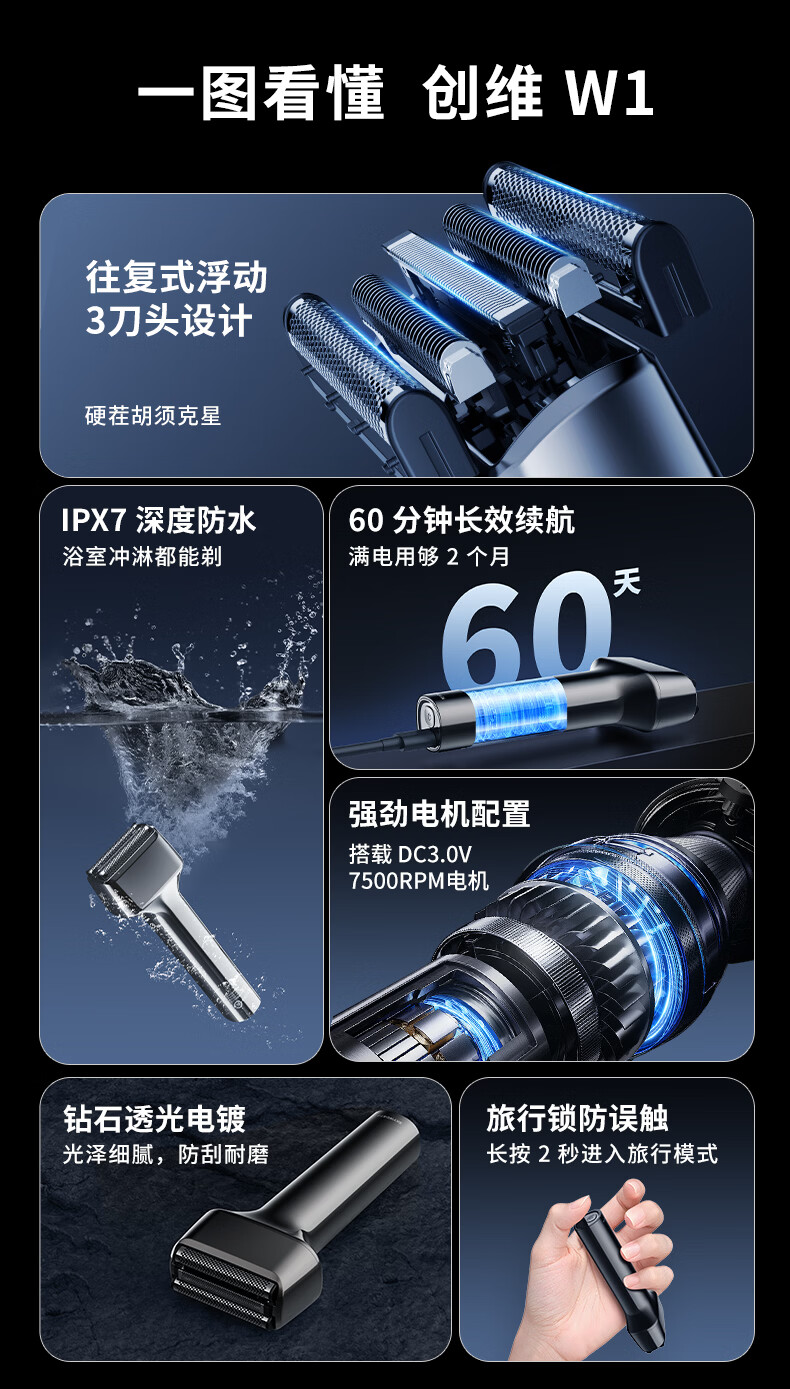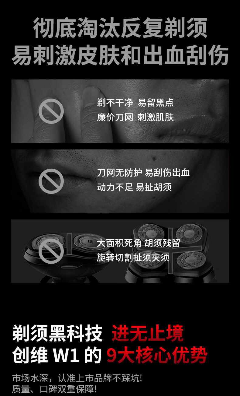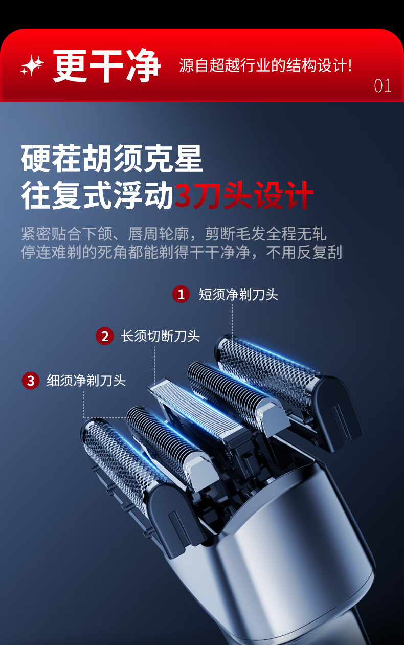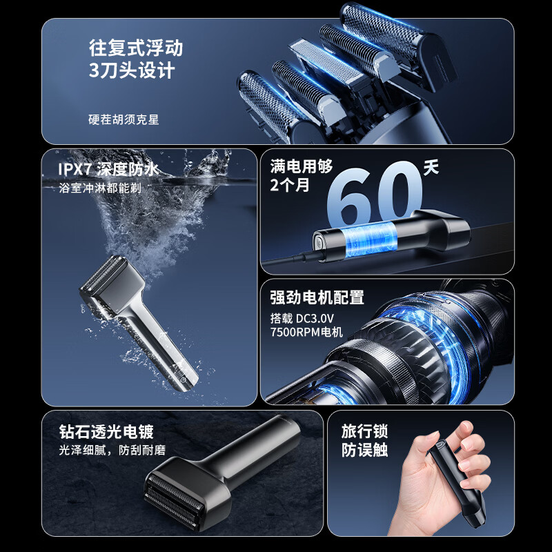 解决一切浓密胡须肤质;全身水洗;往复式剃须刀