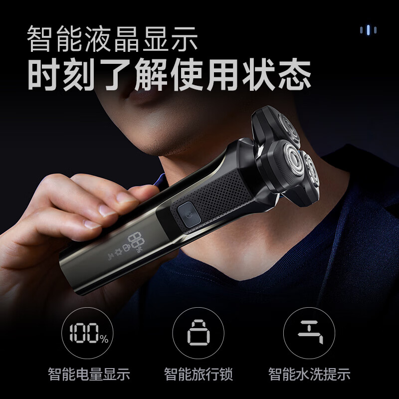 鬓角修剪刀头 鼻毛修剪刀头 刀头保护盖;全身水洗USB充电;旋转式剃须刀