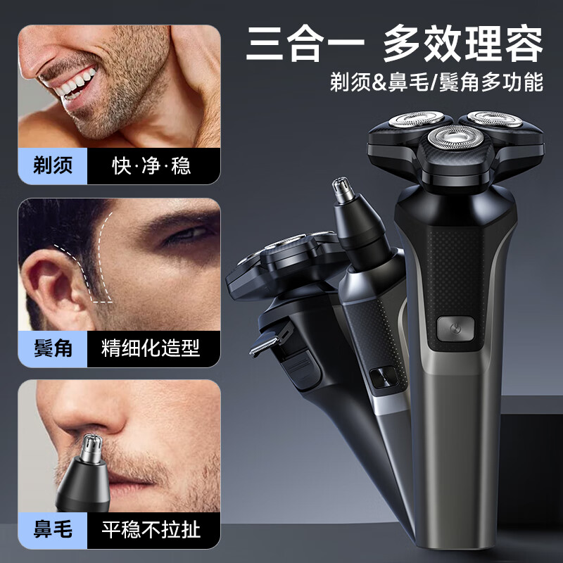 配置清单:电动剃须刀*1、说明书*1、充电线*1,鼻毛修剪器*1