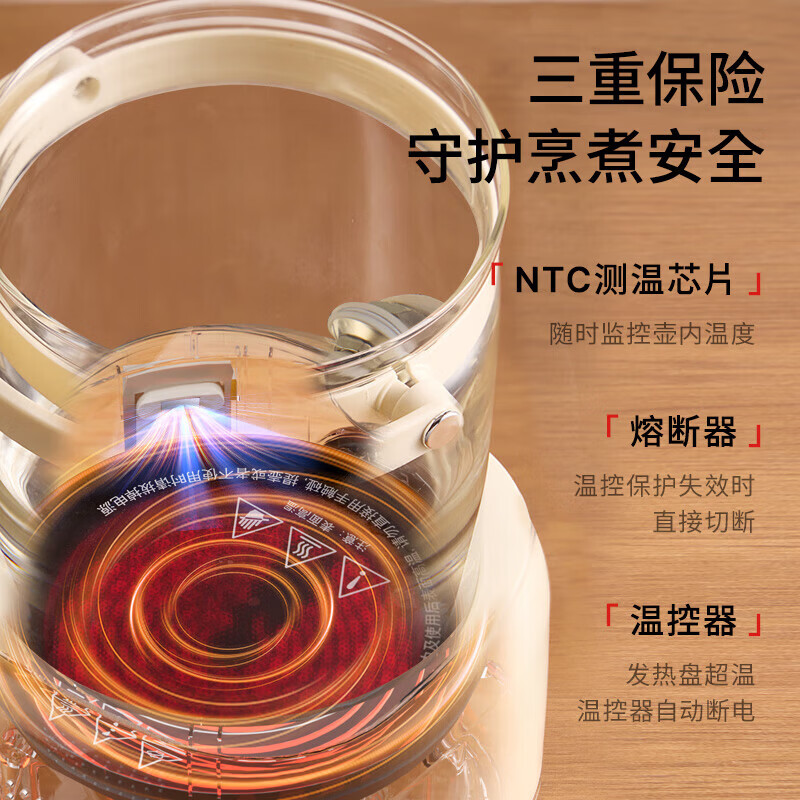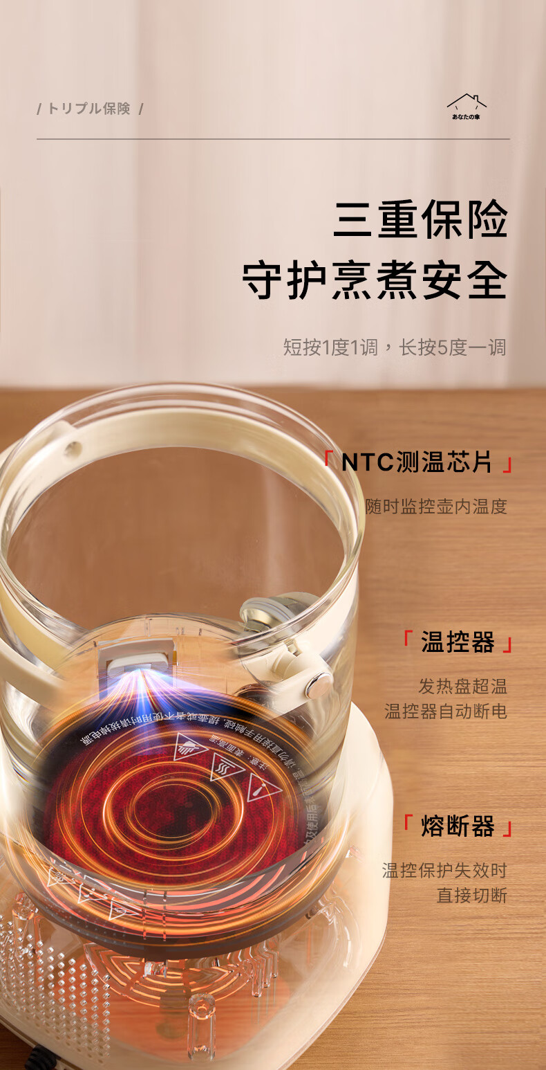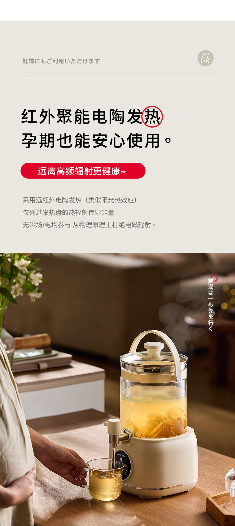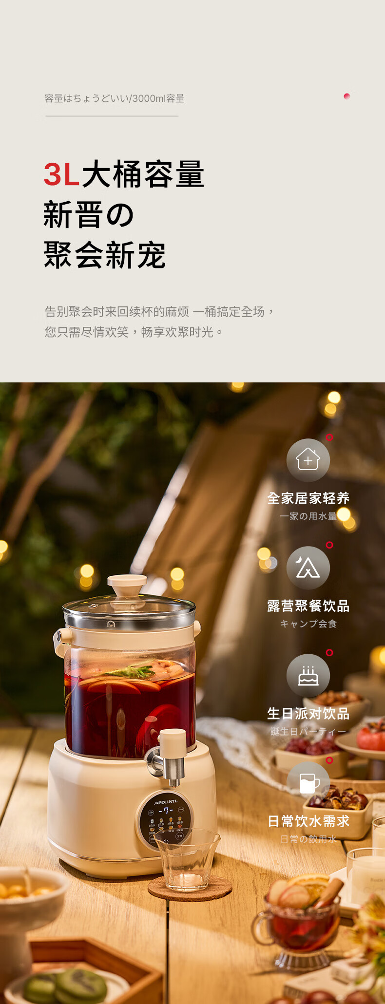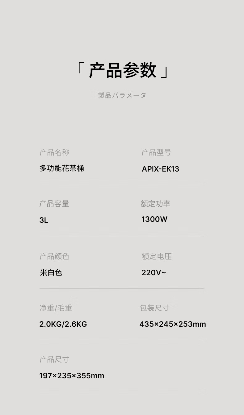 3L大容量,水龙头设计,轻松接水;微晶玻璃面板,防水防爆耐高温易清洗,1300W功率;加厚全高硼硅玻璃机身,0硅胶0涂层