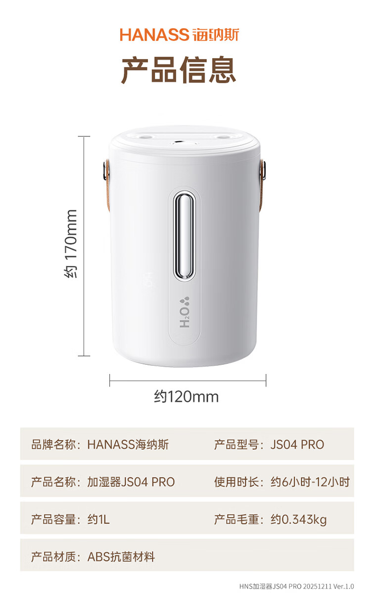 产品名称:加湿器JS04 PRO