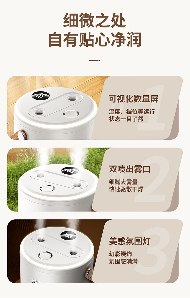 卧室轻音 婴儿办公室空气加湿净化抑菌;桌面大容量 家用大雾量;智能恒湿母婴JS04 Pro年会礼品
