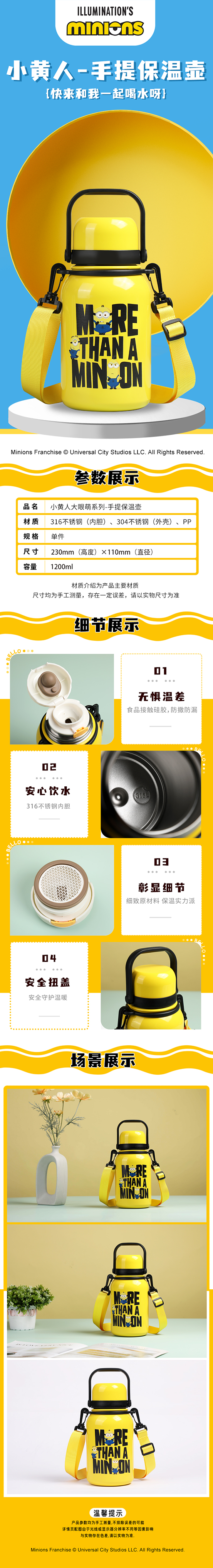 小黄人 大眼萌手提保温壶1200MLCBH010291