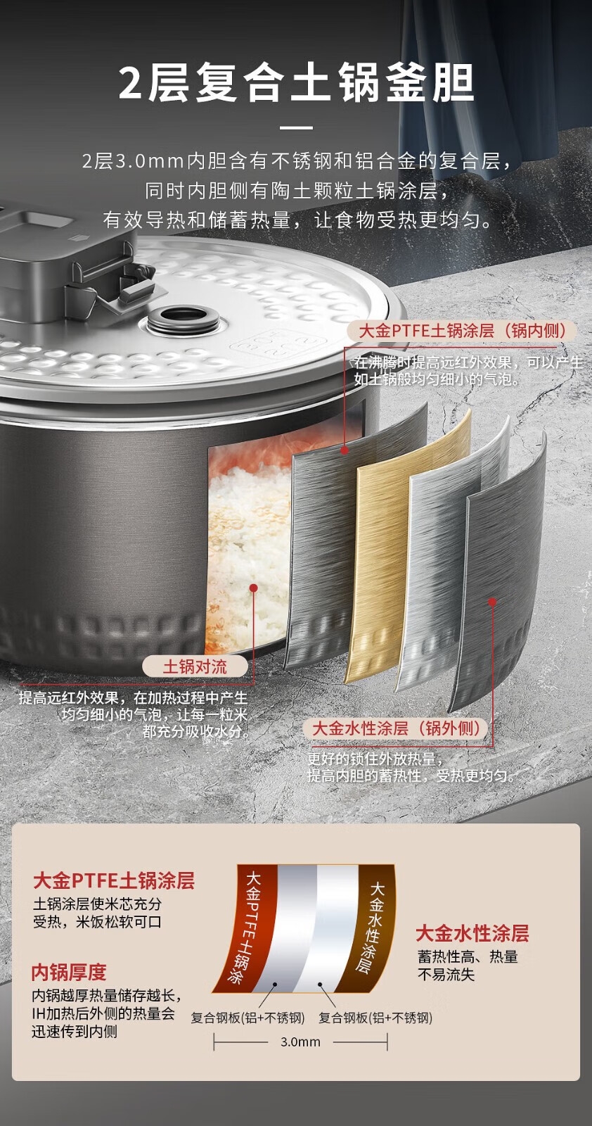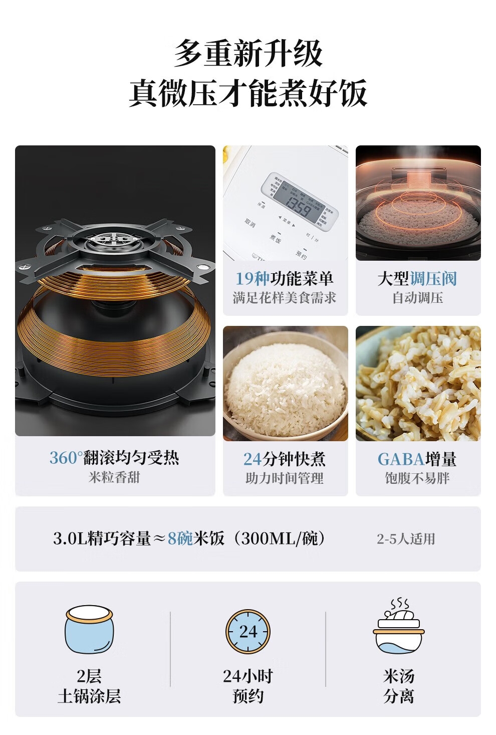 智能液晶大屏;功能菜单一目了然,大师厨艺简单get;3L精巧容量,2-5人使用刚刚好