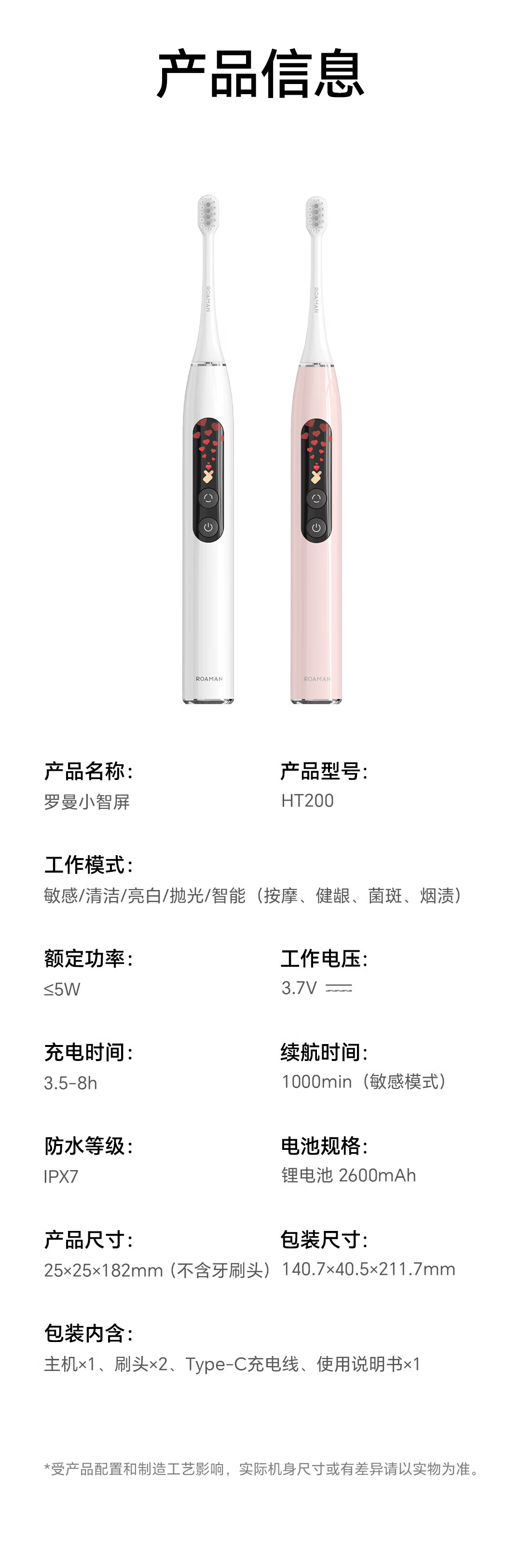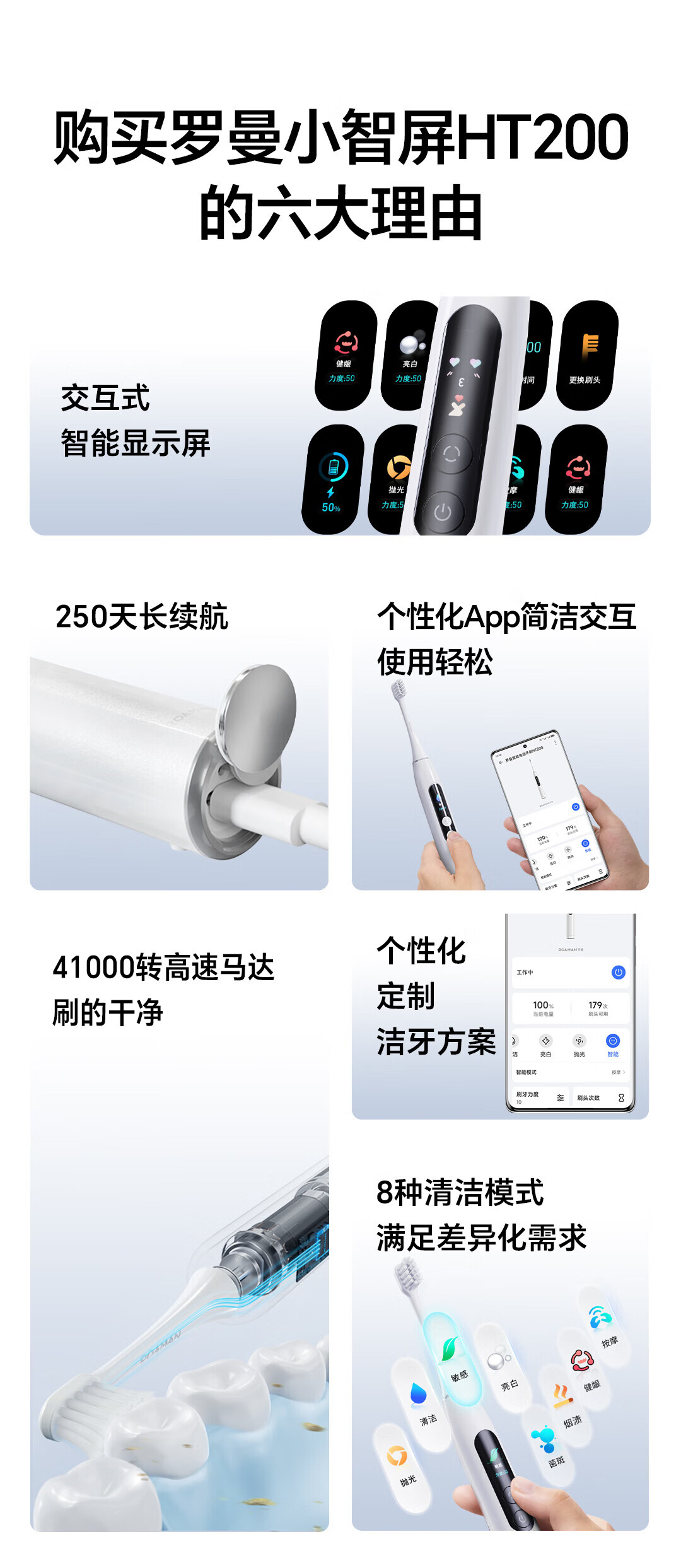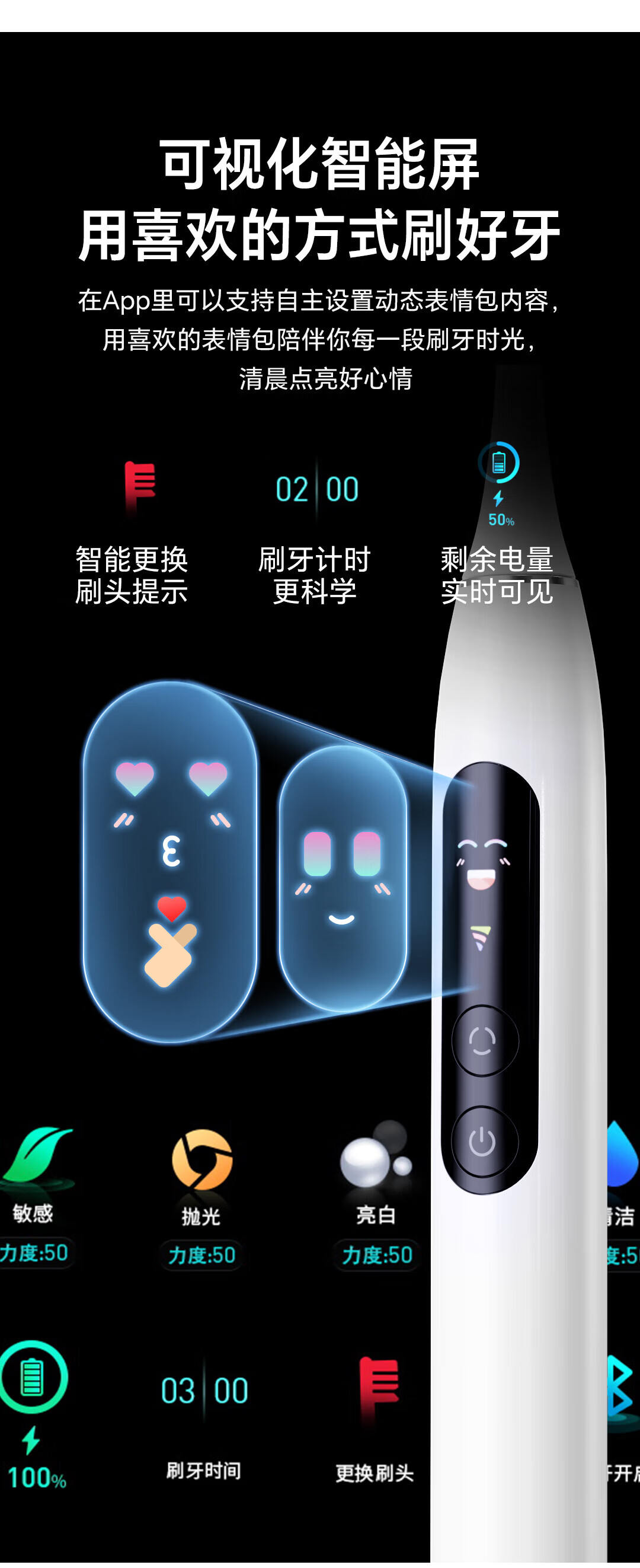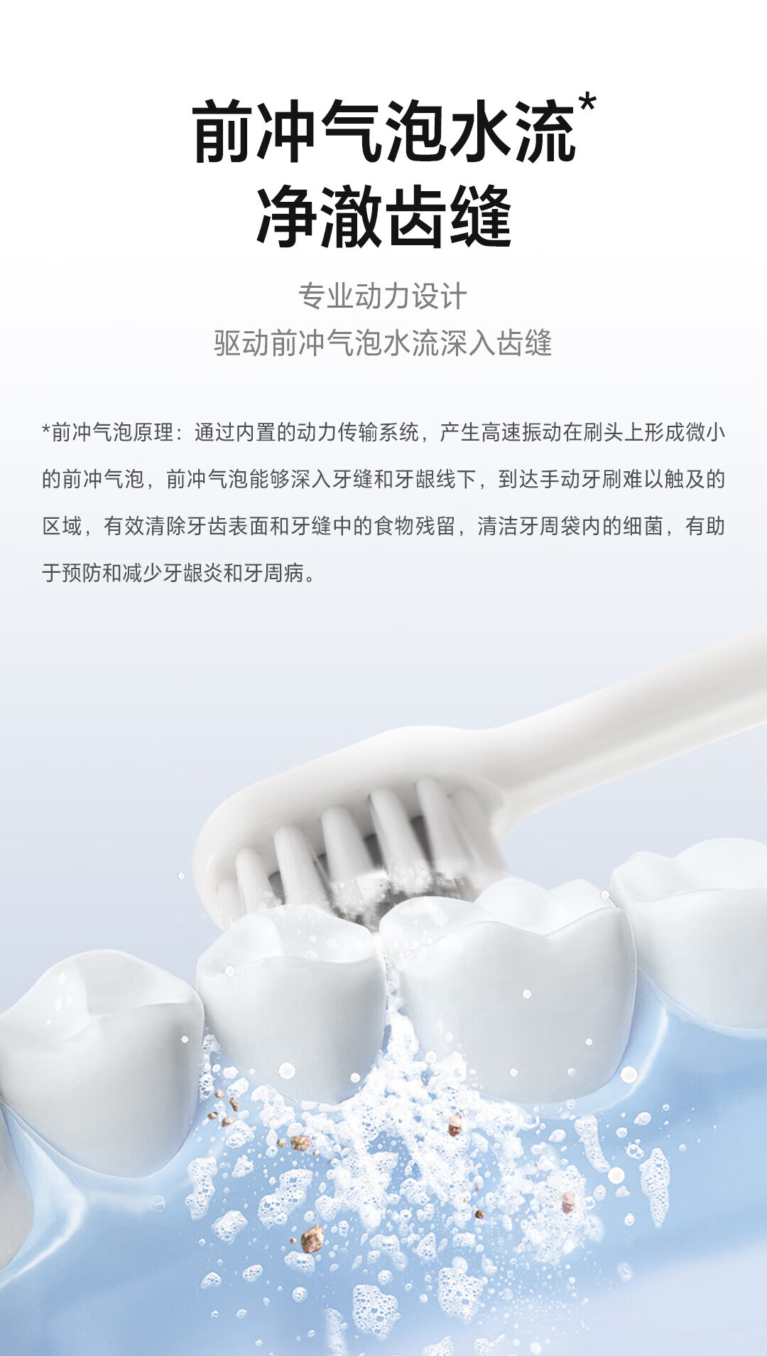 41000次/分钟声波震动;8种清洁模式,应对不同口腔问题;IPX7级全身水洗,可淋浴