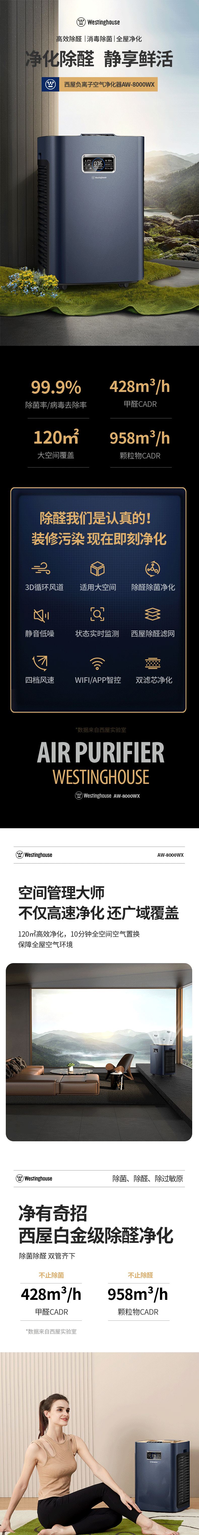 双涡轮增压净化特高效去除甲醛;外壳采用台湾奇美757KABS工程塑料制造,美观经;PM2.5数字显示,粉尘传感器监测空气质量、可设置;高效级能效等级(CCM:P4/F4)去除甲醛率高达;按键操作,设开关/风速/负离子/自动/童锁 五个按