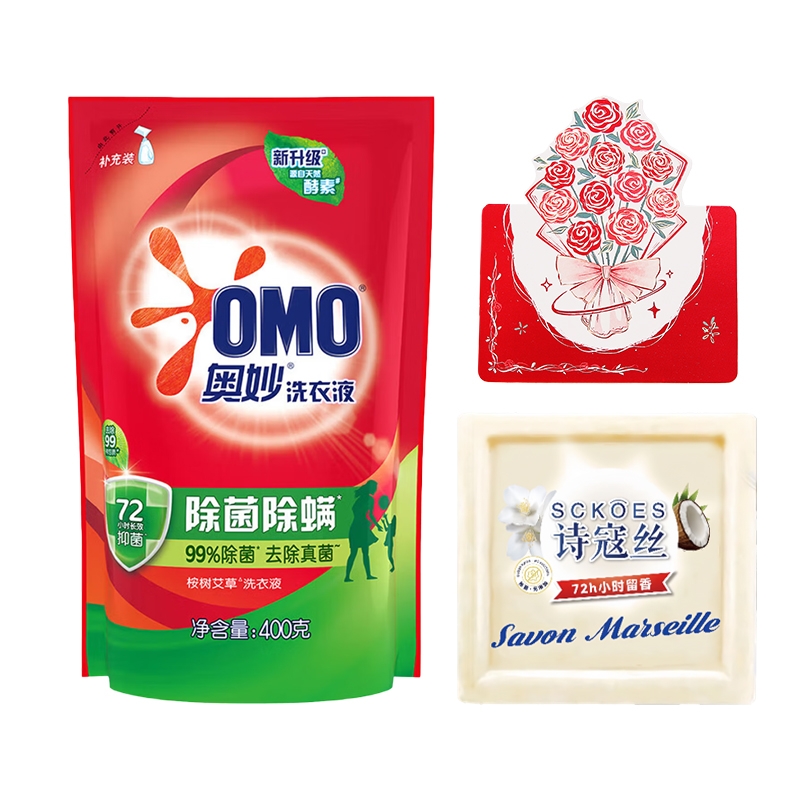 配置清单:1. 施华蔻多效修护洗发露600ml 2. 施华蔻多效修护润发乳400ml 3. Sckoes诗寇丝抑菌皂310g 4. 小仓熊香氛洁厕液(蜜桃香)450g 5. 小仓熊马桶挂篮-(单个装)50g 6. 奥妙除菌除螨洗衣液400g 7. 立体玫瑰花贺卡(赠) 8. 精选精美礼盒-LH006
