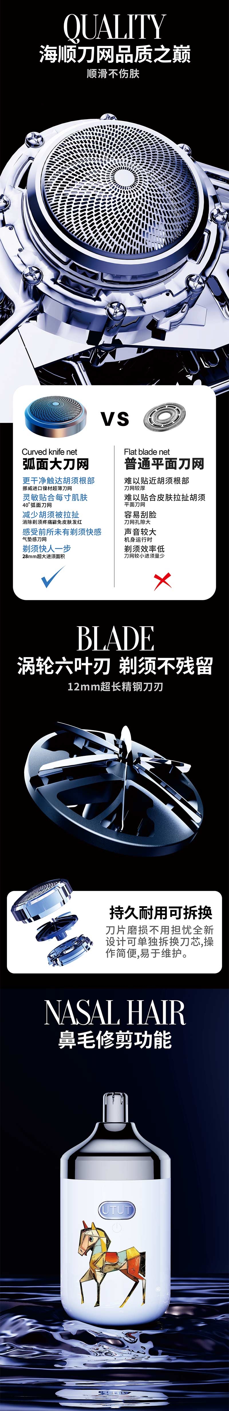 年度IP马年生肖伴手礼,一机四用,一秒切换不同功能;挪威进口镍材刀网,直达胡须根部,亲肤柔软,一剃干净;自研3倍市场扭力齿轮,粗胡须也不用怕,剃须无拉扯感