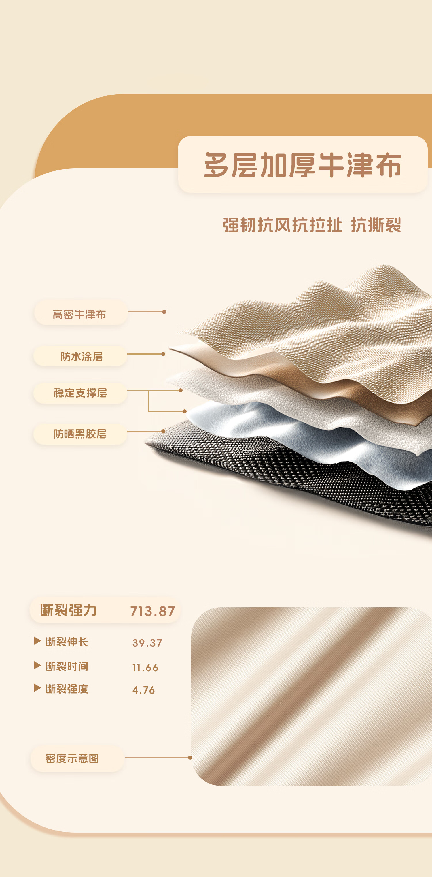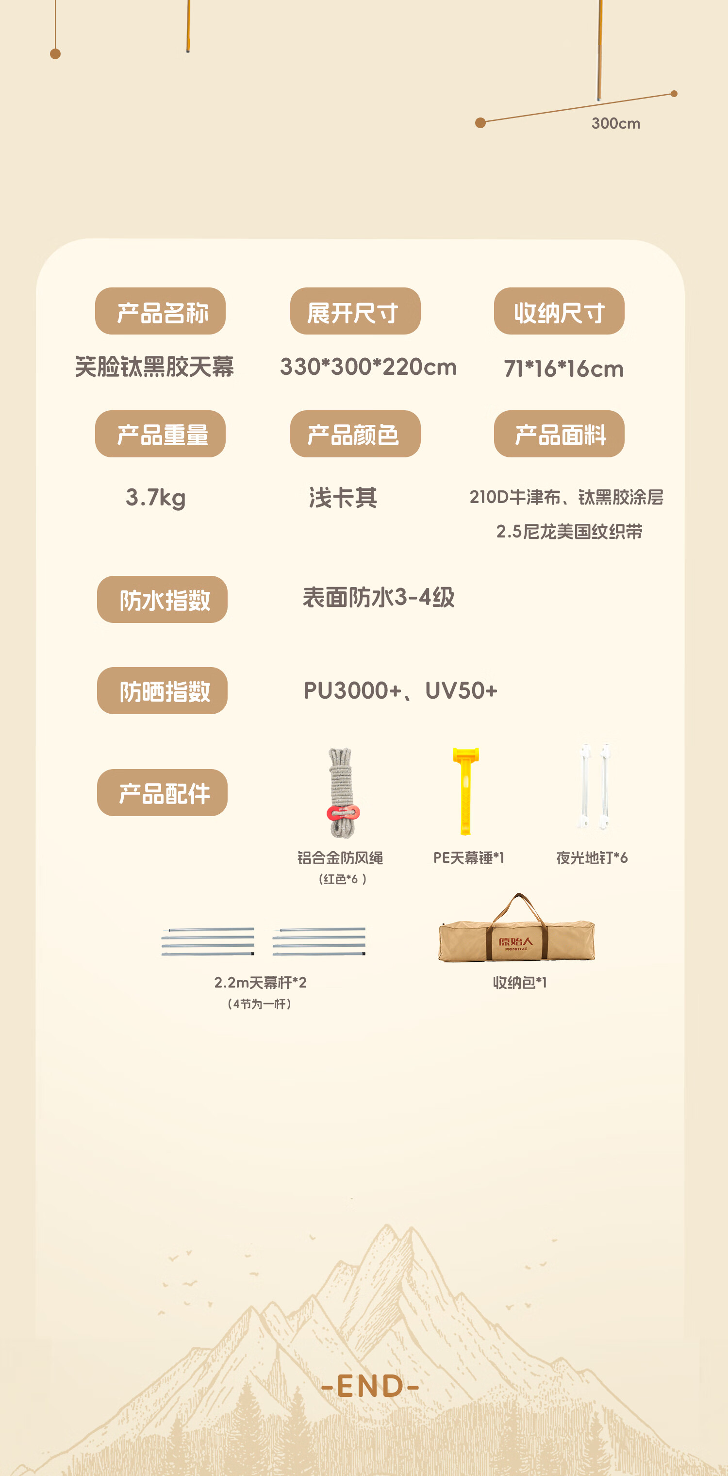 210D牛津布;钛黑胶涂层;尺寸:330*300*220cm