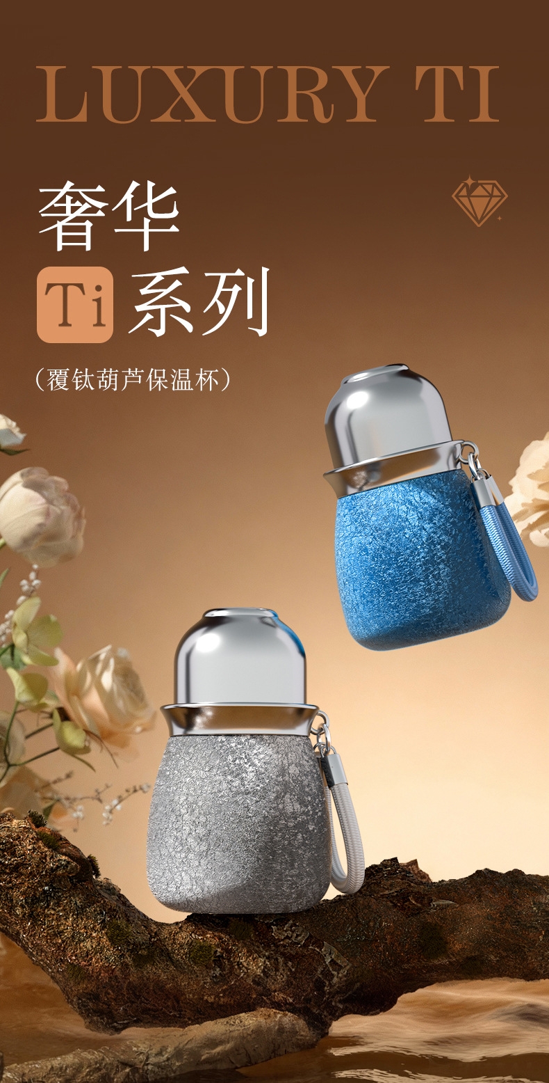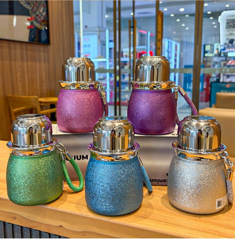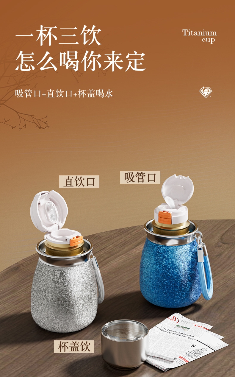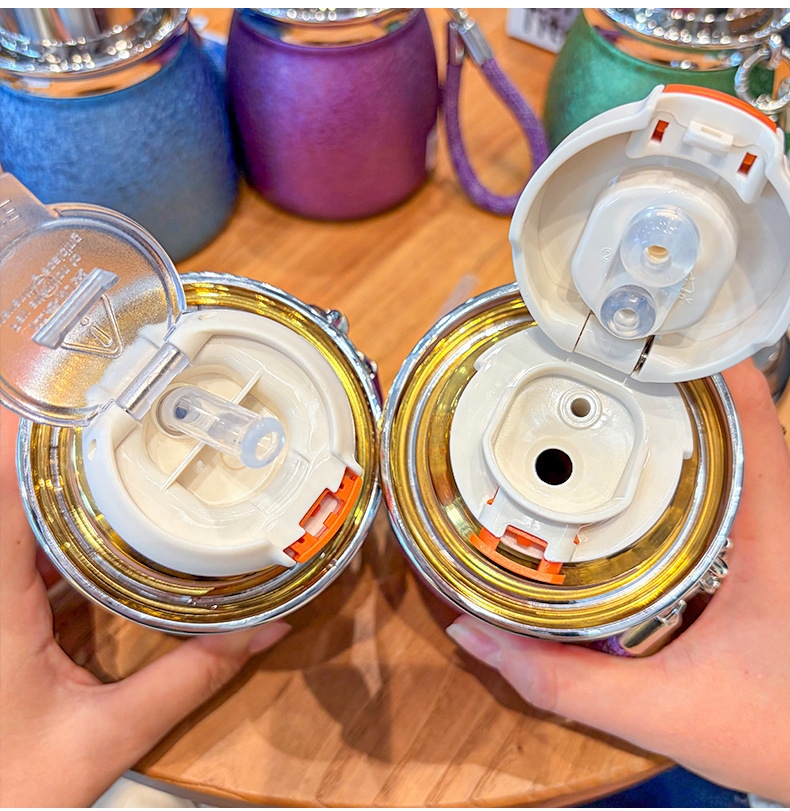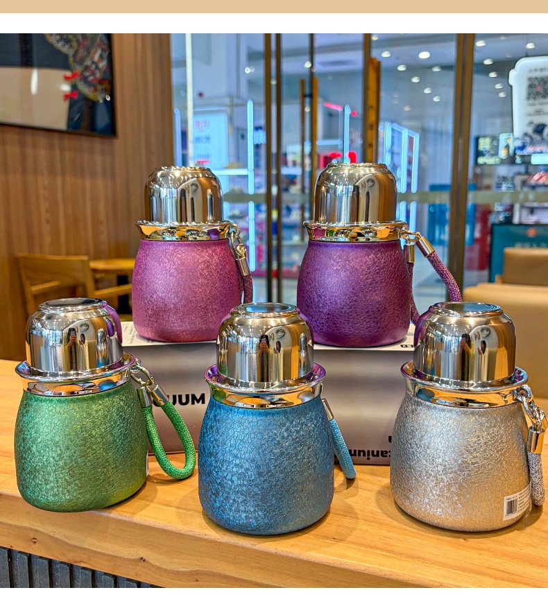 骏天 冰花漆覆钛葫芦保温杯双饮吸管杯DG-0105