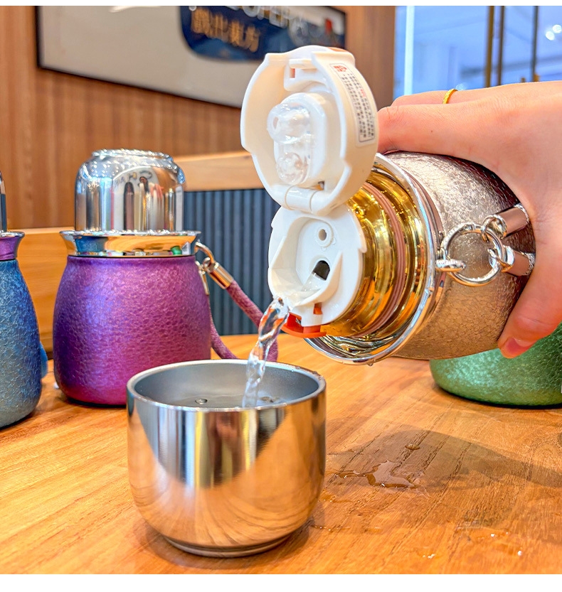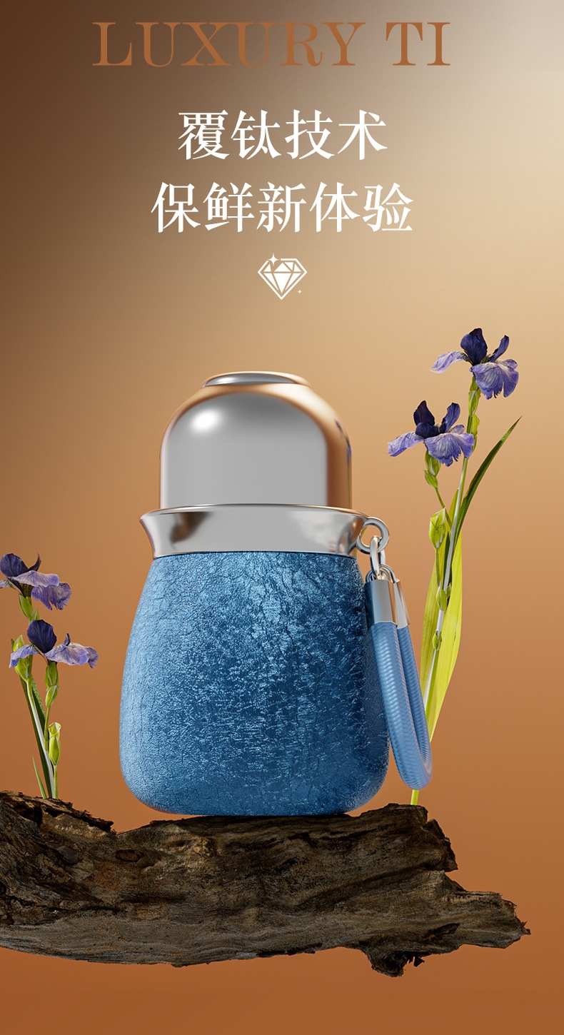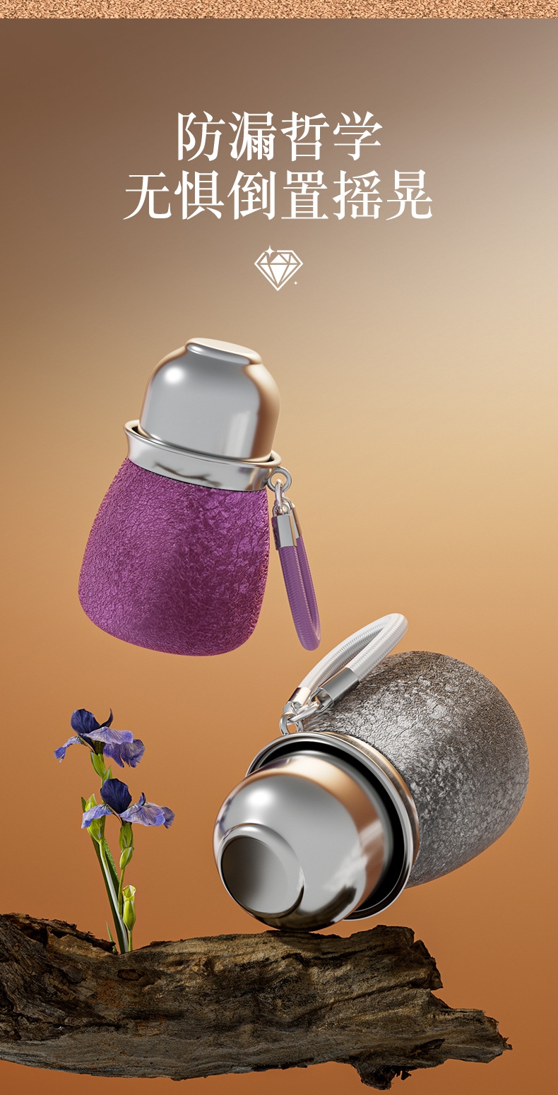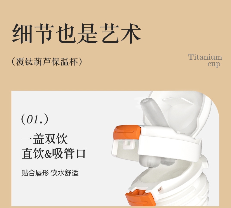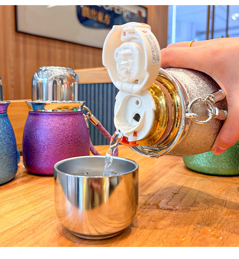 骏天 冰花漆覆钛葫芦保温杯双饮吸管杯DG-0105