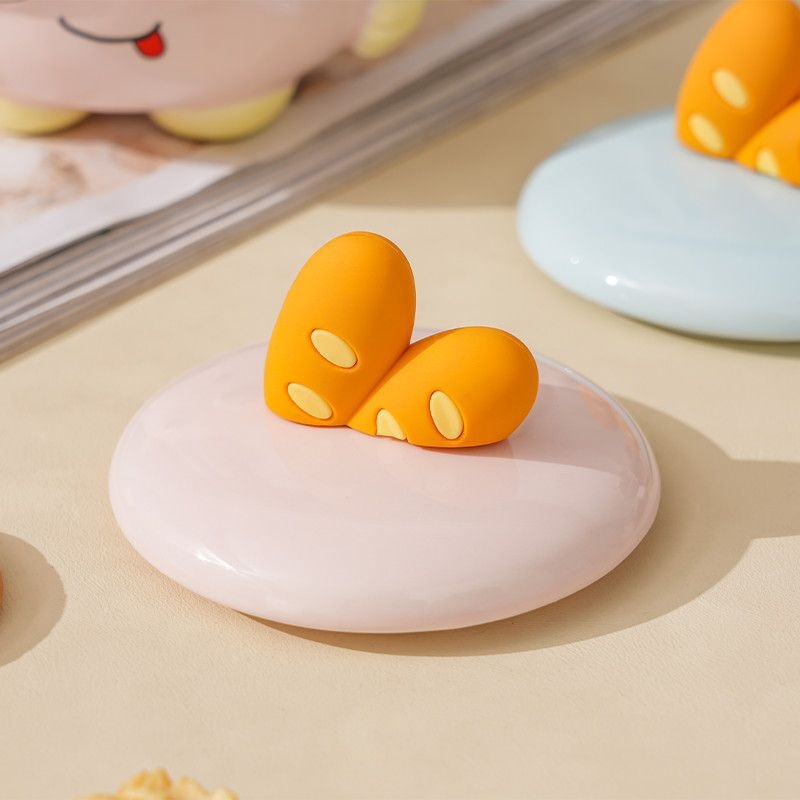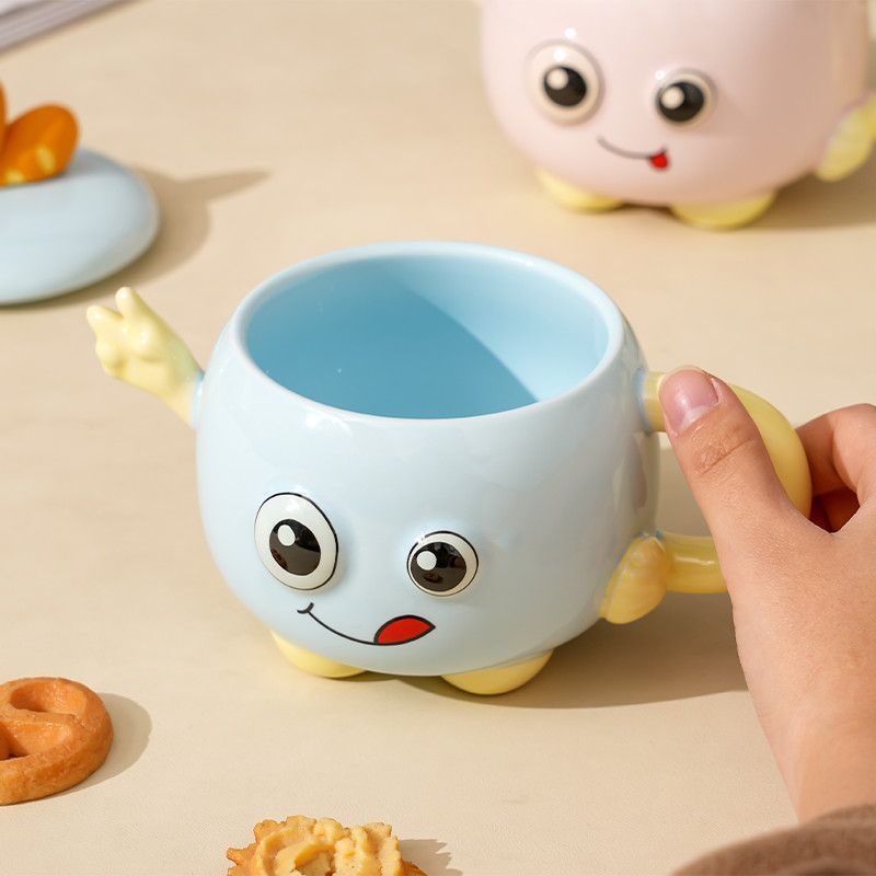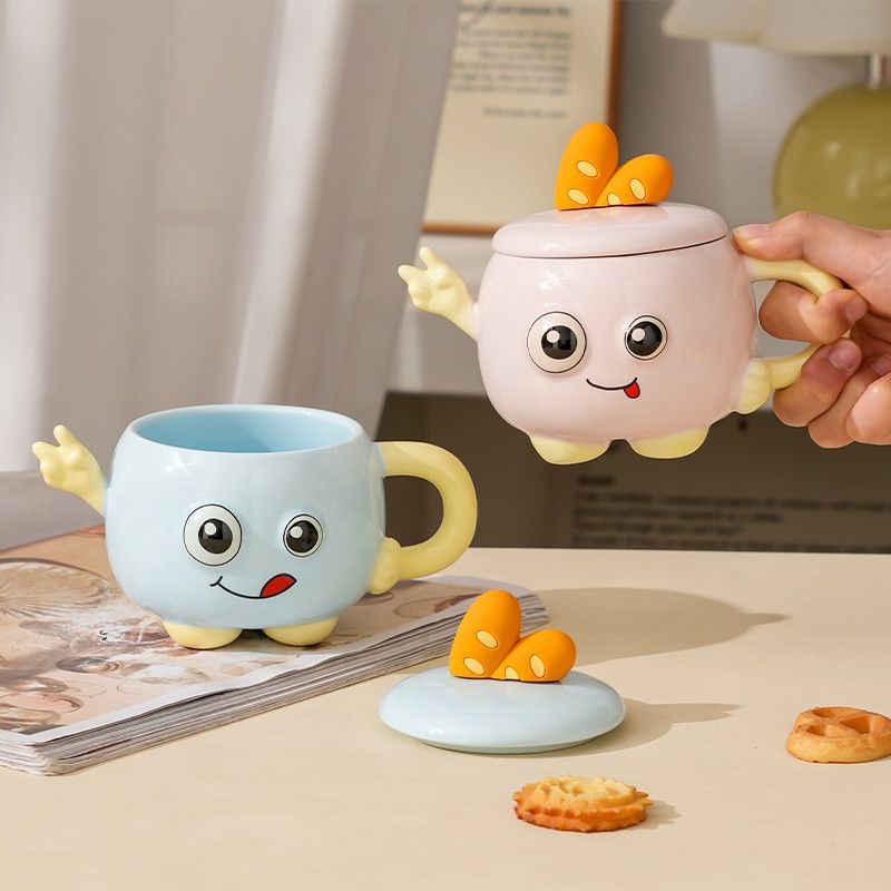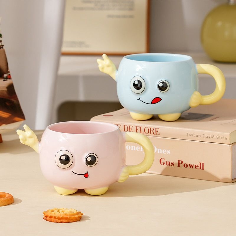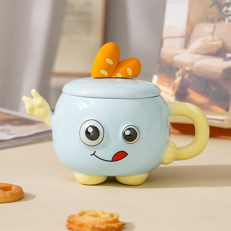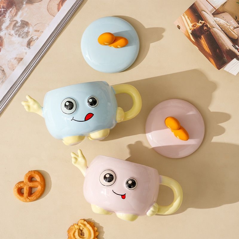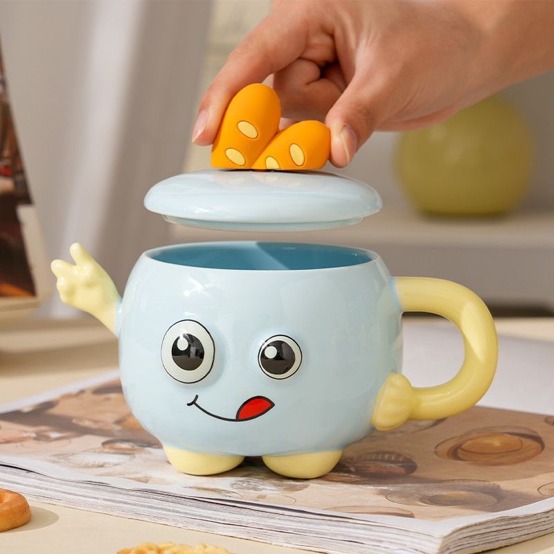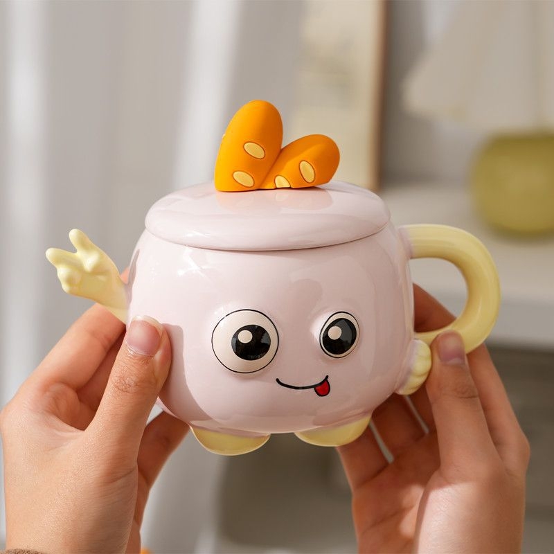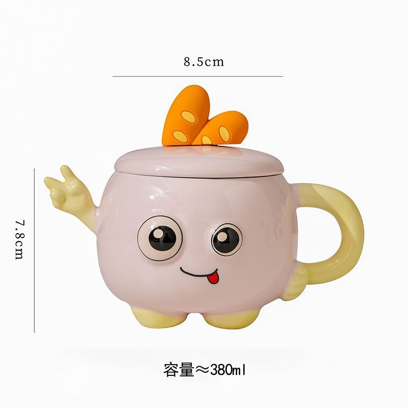 可爱举手比耶调皮表情;一体成型,高温烧制;含盖