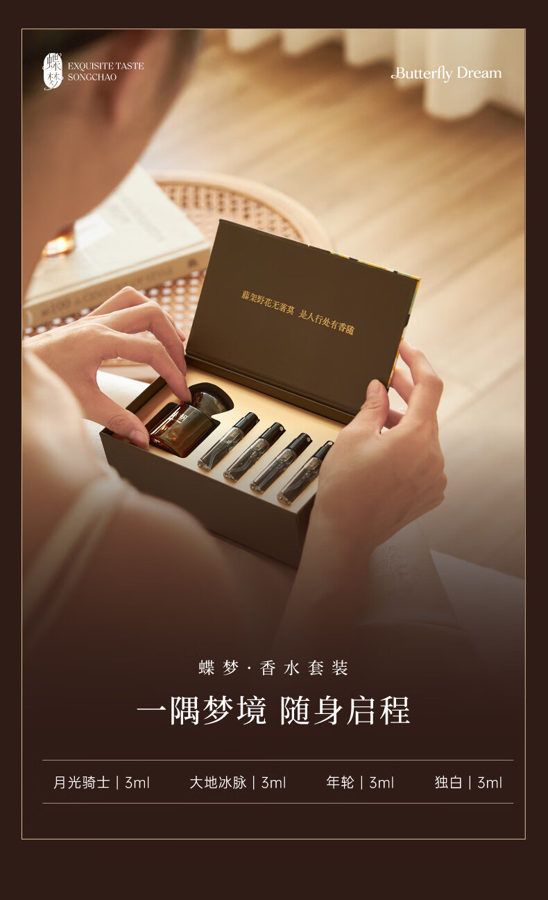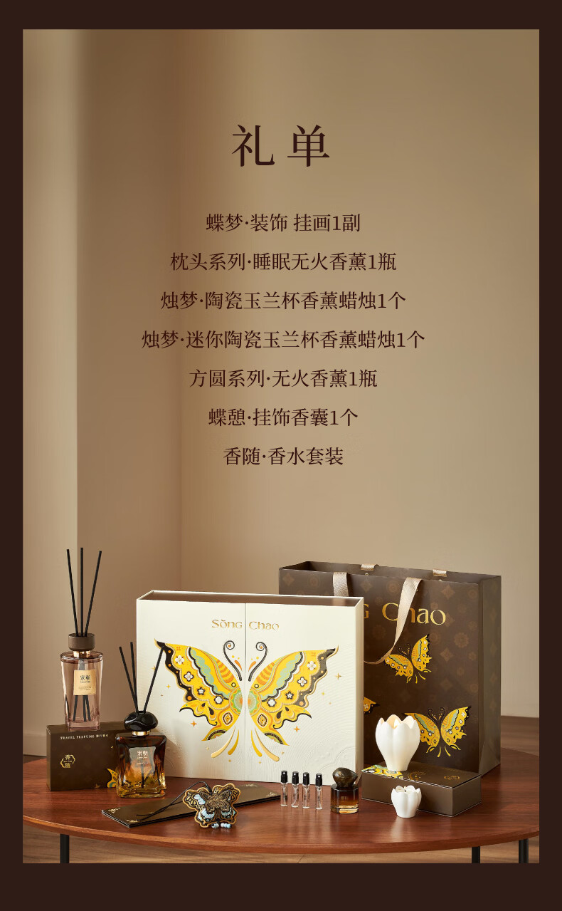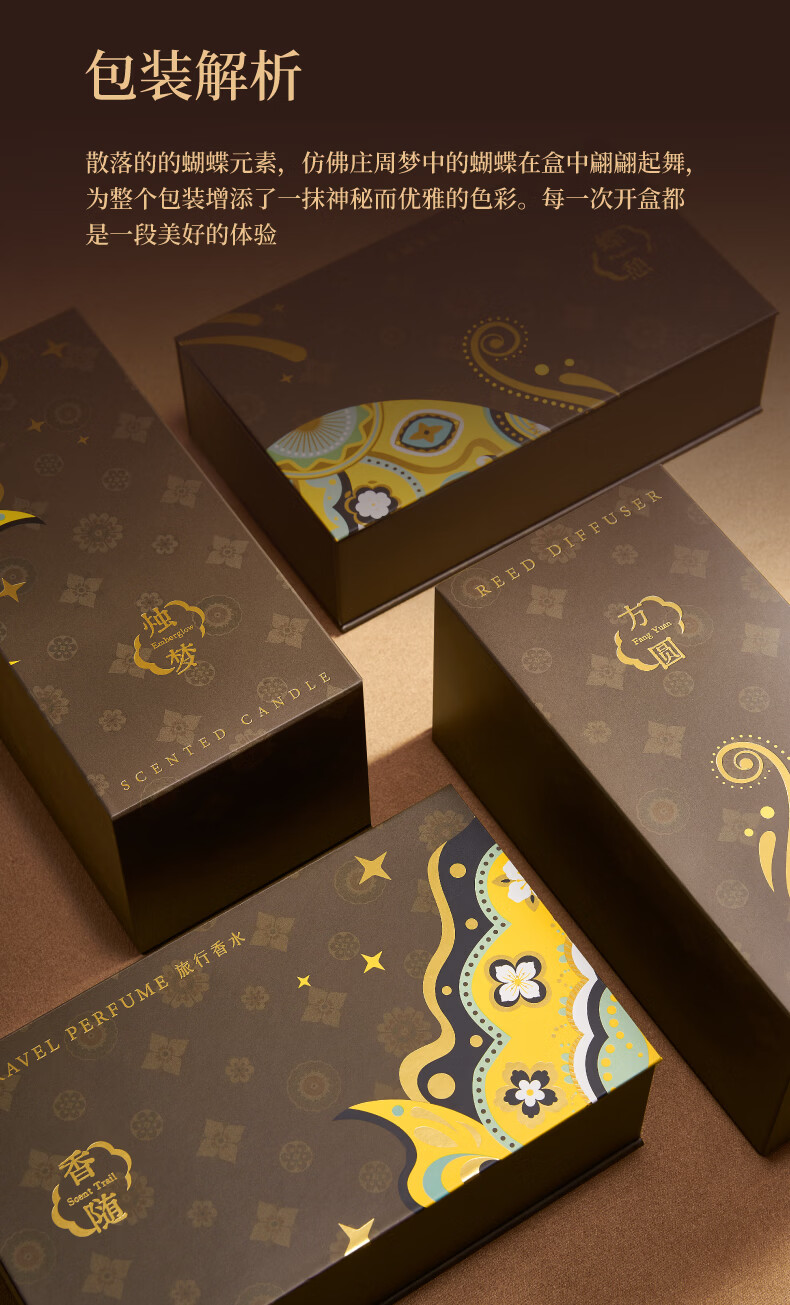 蝶梦礼盒;蝴蝶元素贯穿整个设计;多种香氛组合