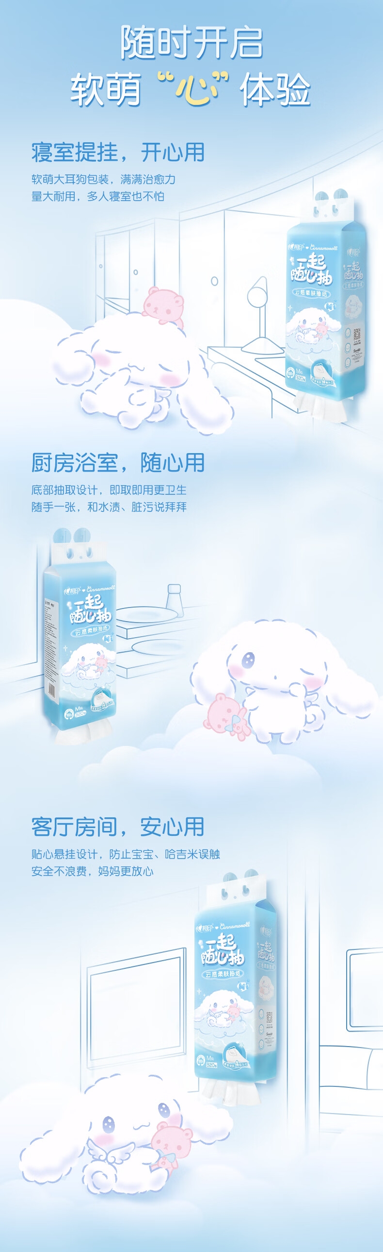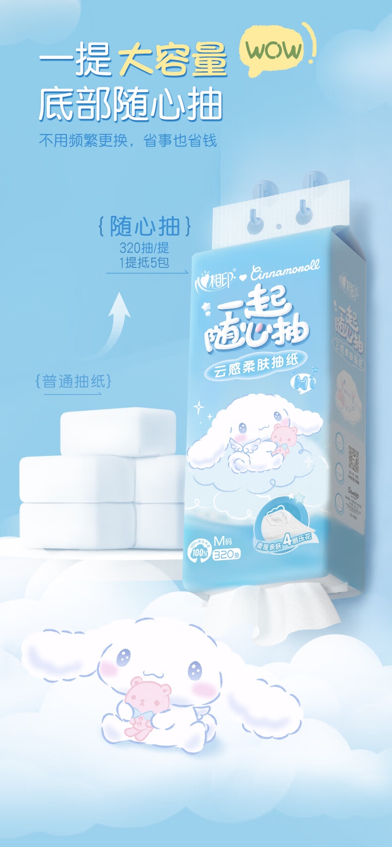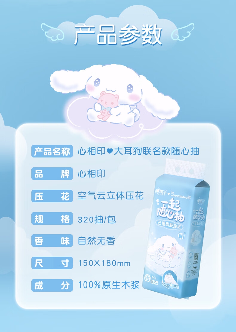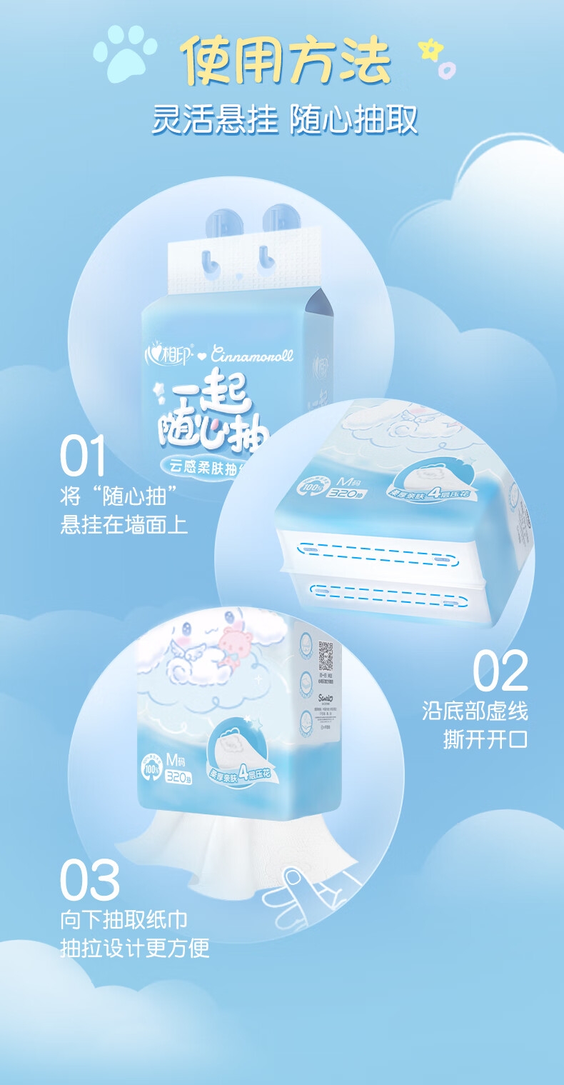四层柔厚亲肤;空气云立体压花;100%原生木浆