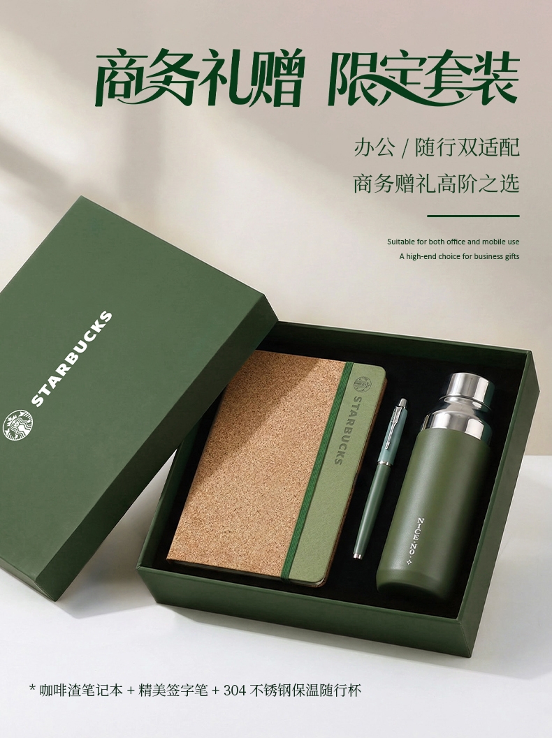 咖啡渣环保封面,办公送礼高阶之选;商务礼盒套装,实用又有格调;可定制 LOGO,企业团购专属礼品