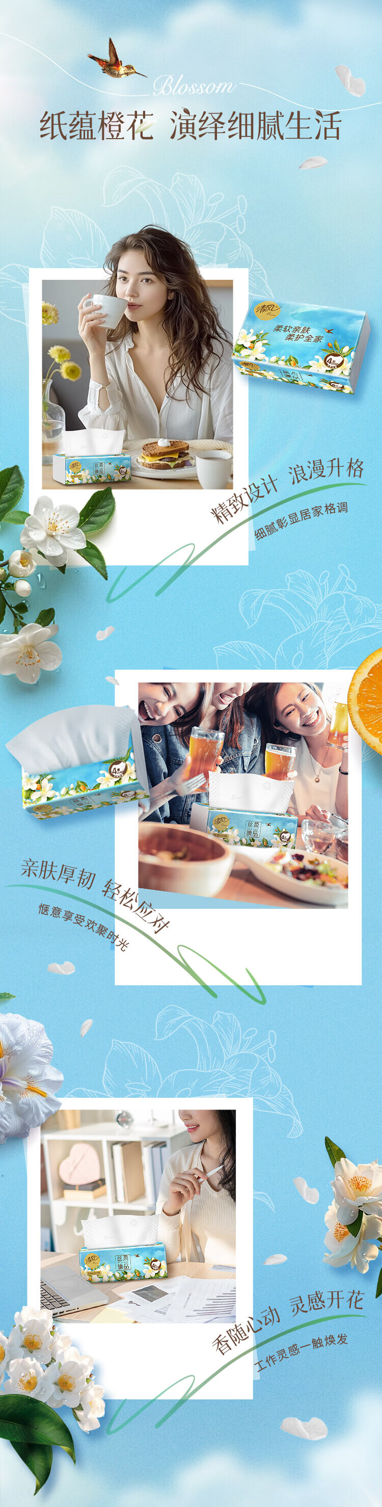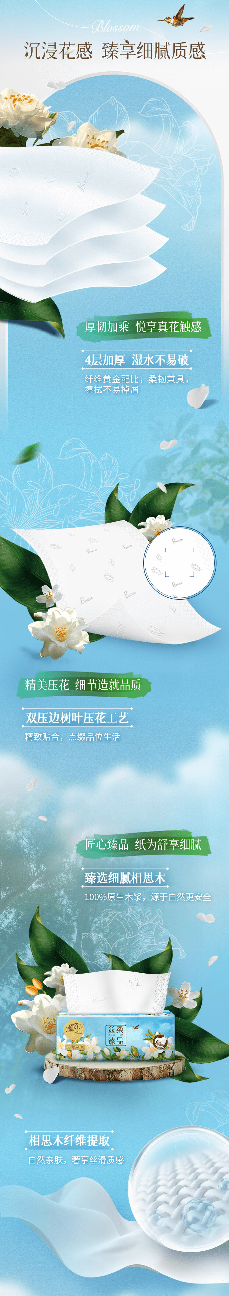 厚韧加乘 悦享真花触感;4层加厚 湿水不易破;纤维黄金配比,柔韧兼具,擦拭不易掉屑
