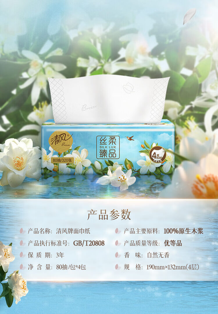 清风 花萃臻品抽纸80抽4包BR41SHC2