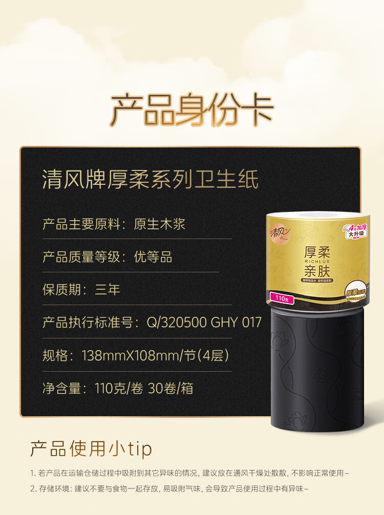 规格:4层110克/卷*30卷