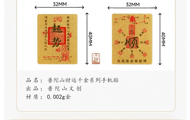 配置清单:1. 蕉下轻便扩容迷你斜挎包*1 2. 普陀山文创出品财运千金系列手机贴*1 3. Beneunder户外轻量随行保温杯*1 4. 幻响小方宝快充移动电源*1 5. 红色礼盒*1 6.红色礼袋*1