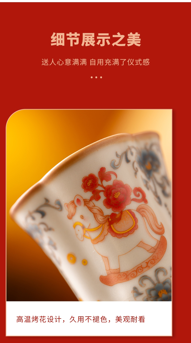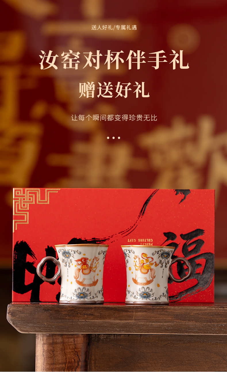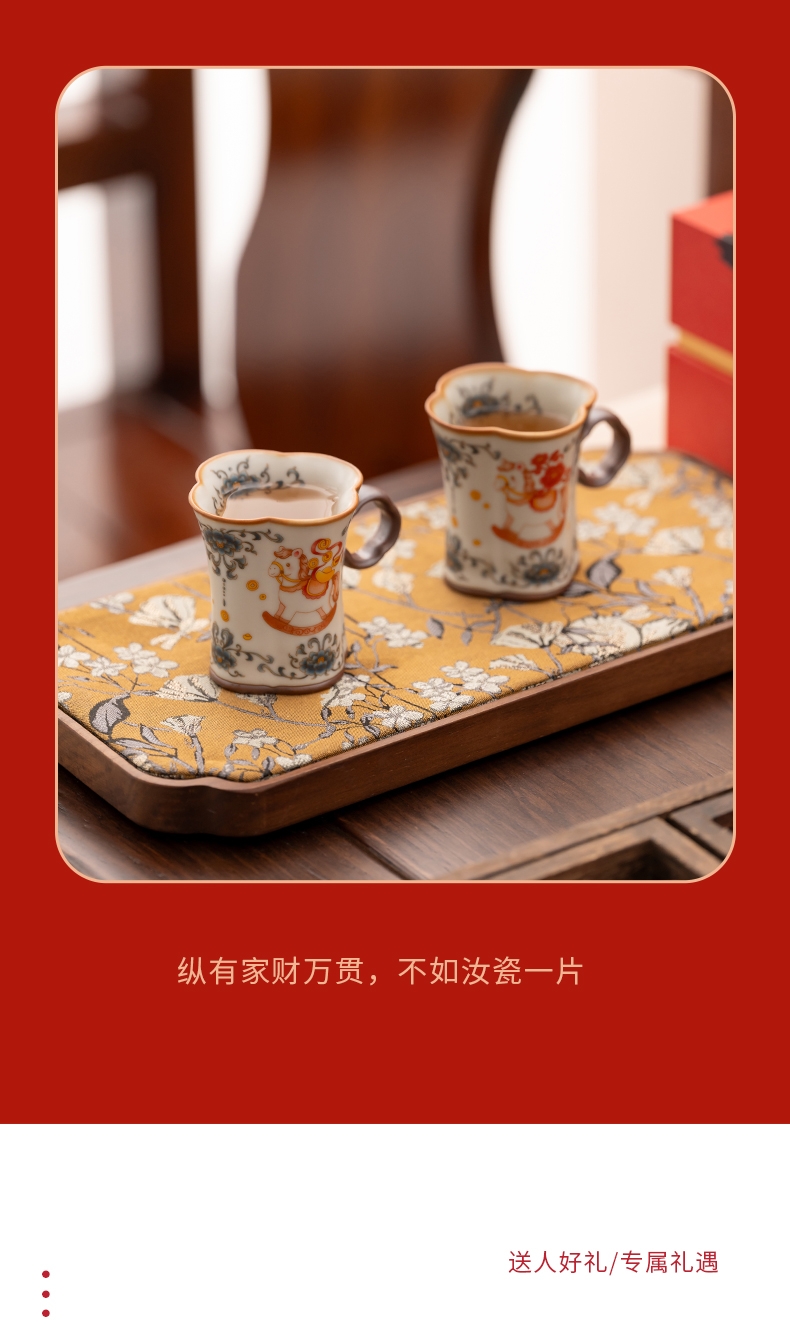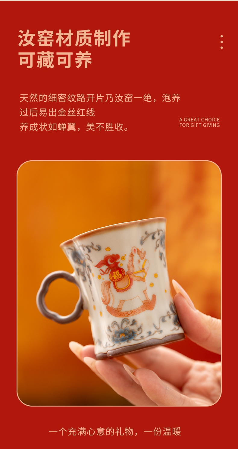 马年开门红礼品,正面马上有钱,反面马上有福。;亚黄汝瓷,玛瑙入釉,蝉翼开片,内外皆有花面;家有千财万贯,不如汝窑一片。独家专利技术新品