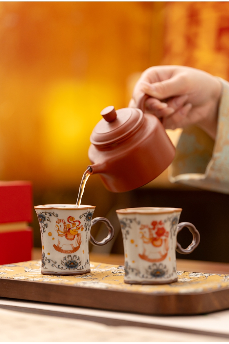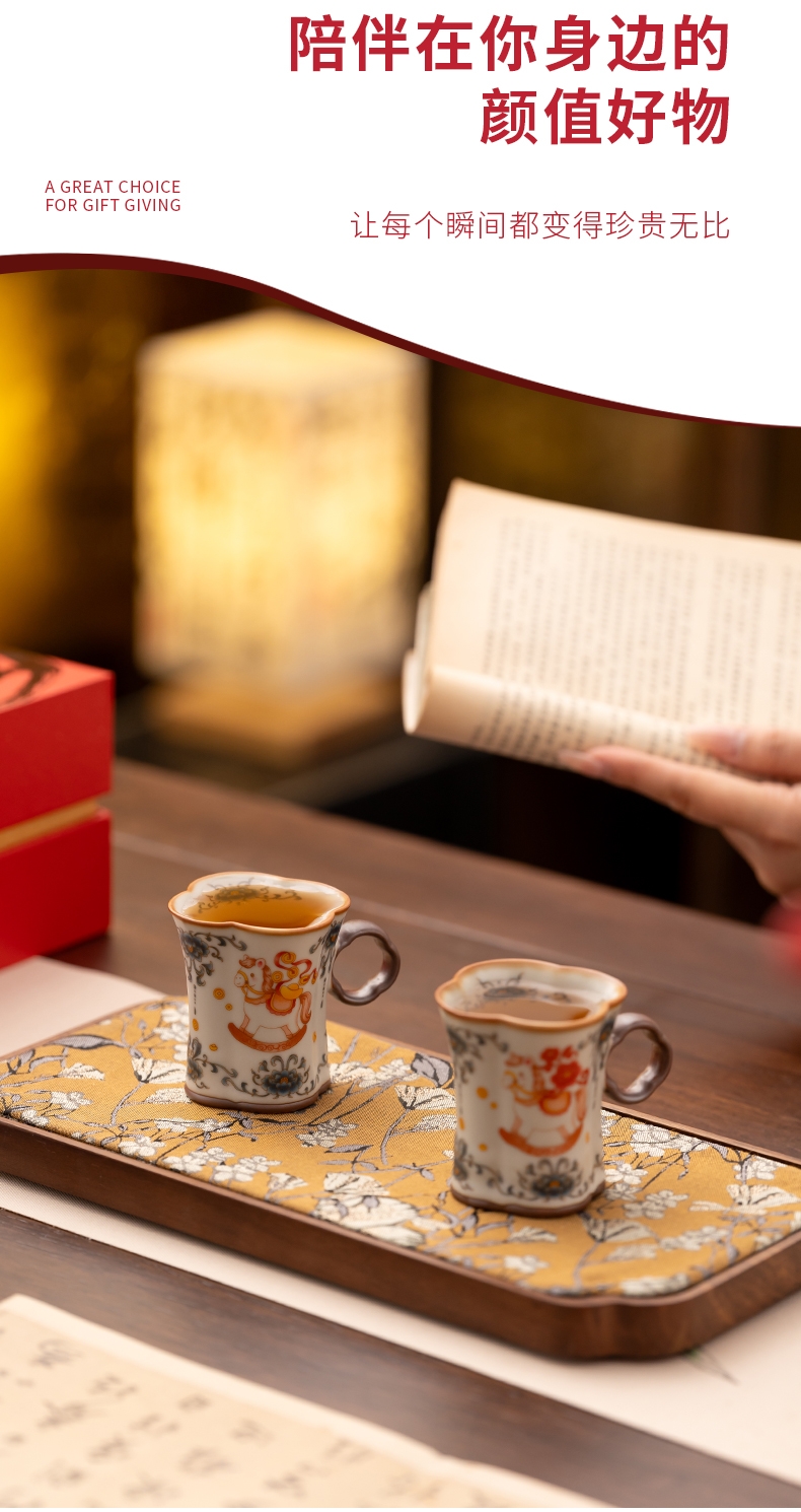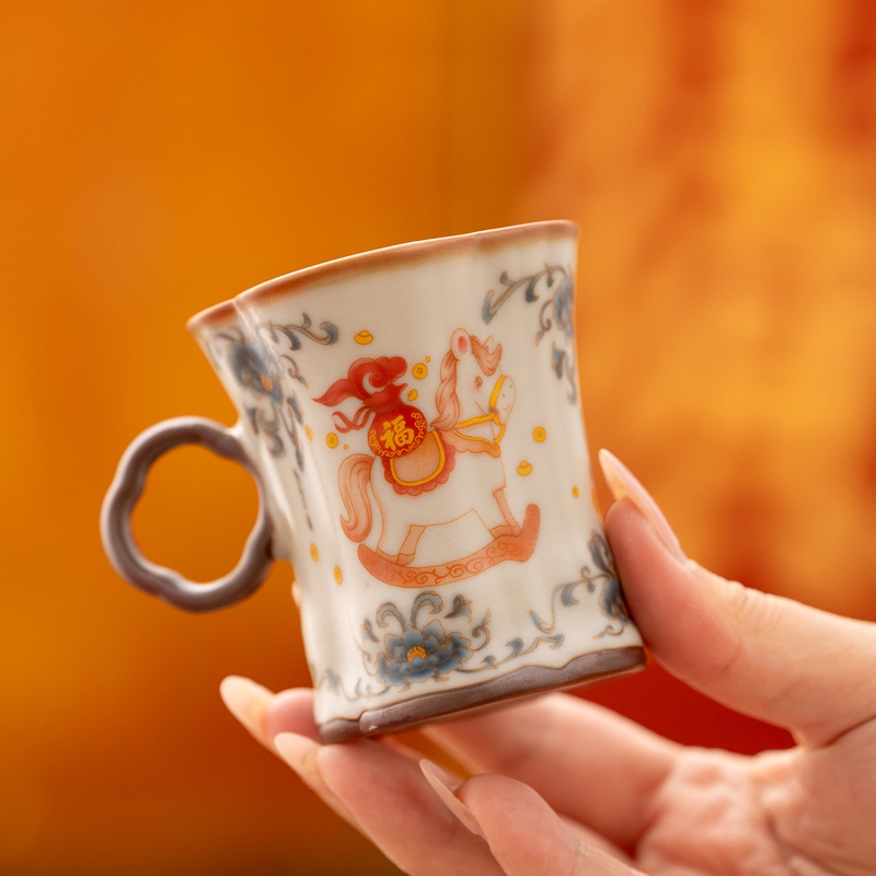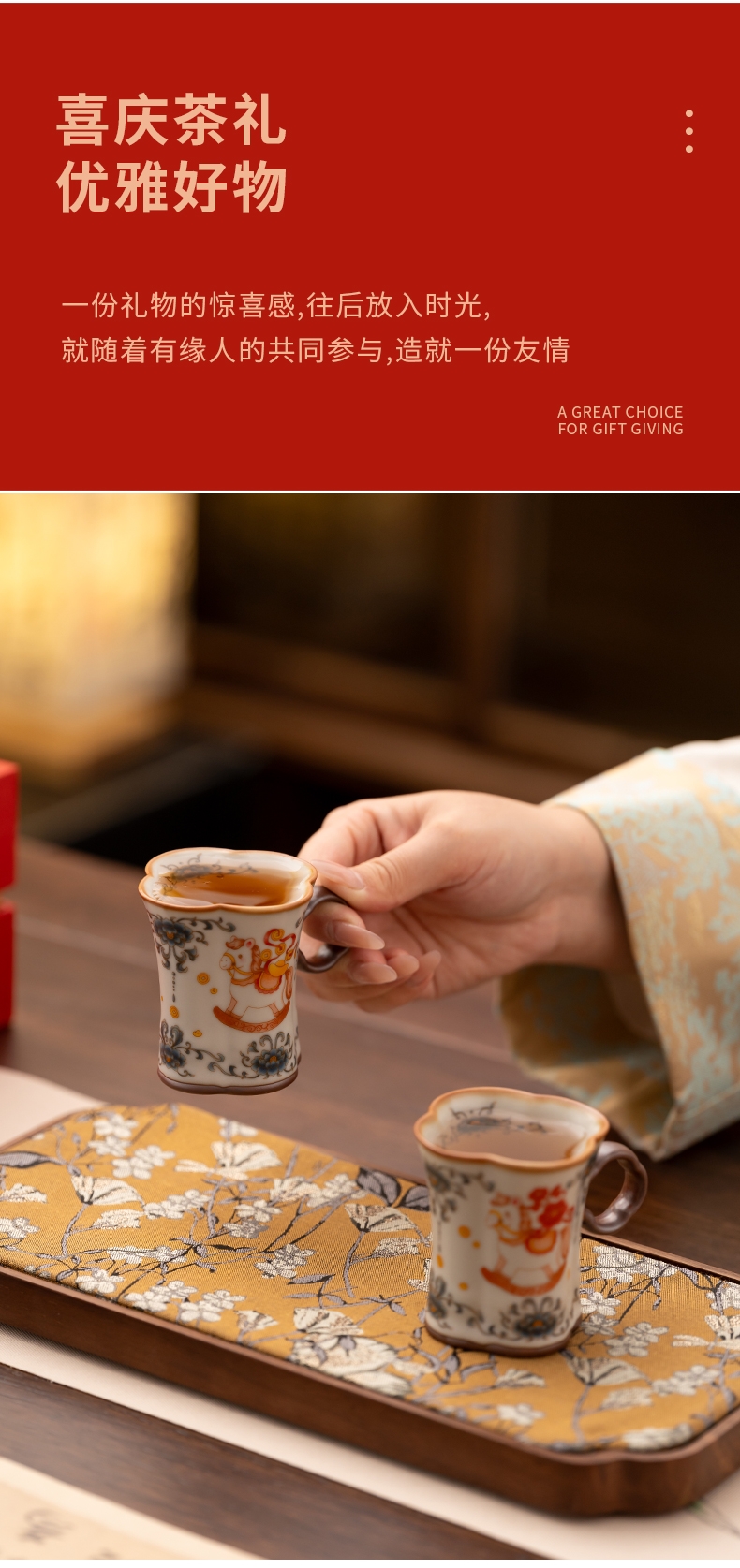 马年开门红礼品,正面马上有钱,反面马上有福。;亚黄汝瓷,玛瑙入釉,蝉翼开片,内外皆有花面;家有千财万贯,不如汝窑一片。独家专利技术新品