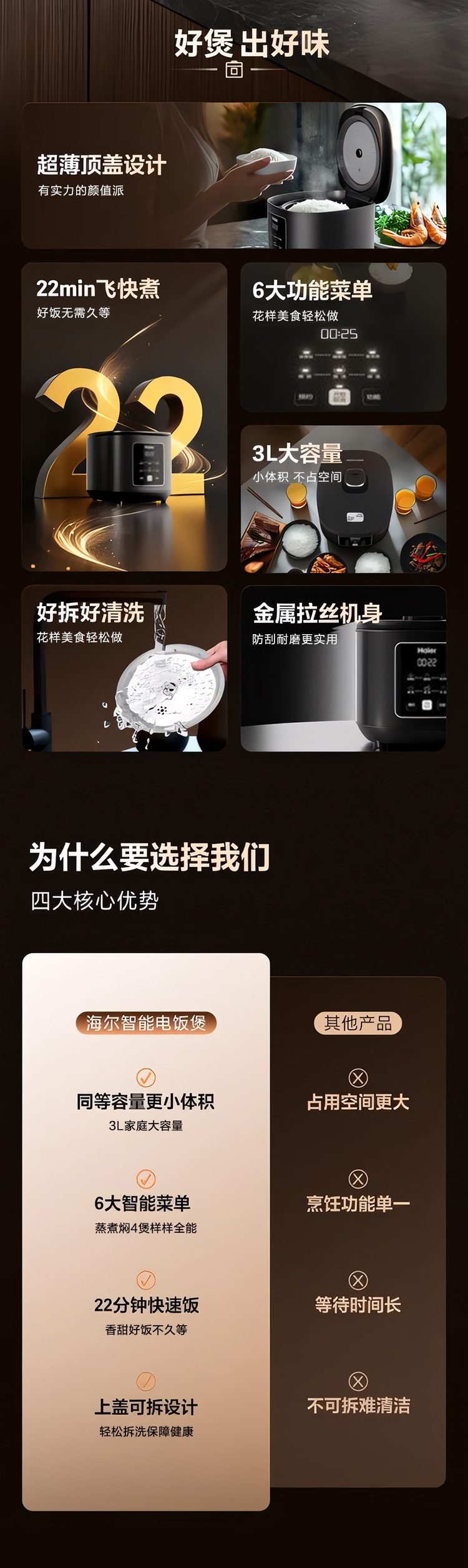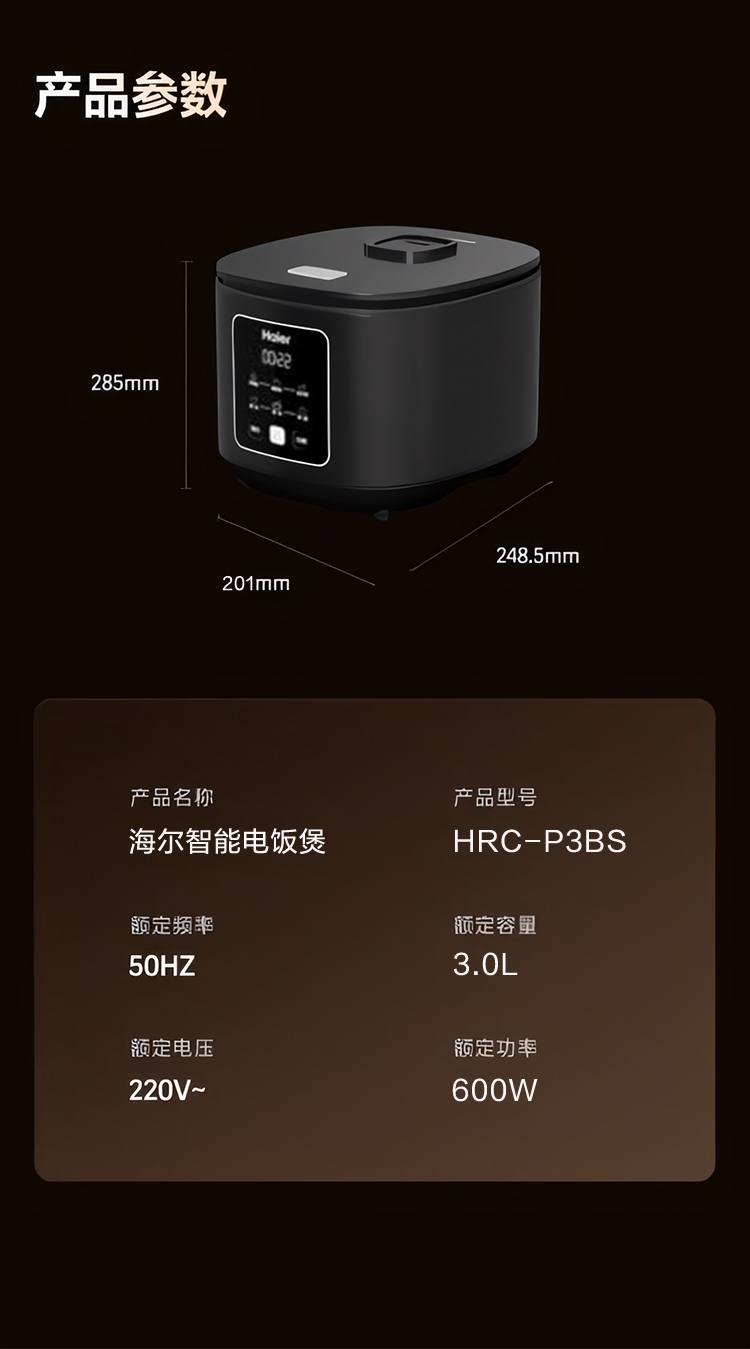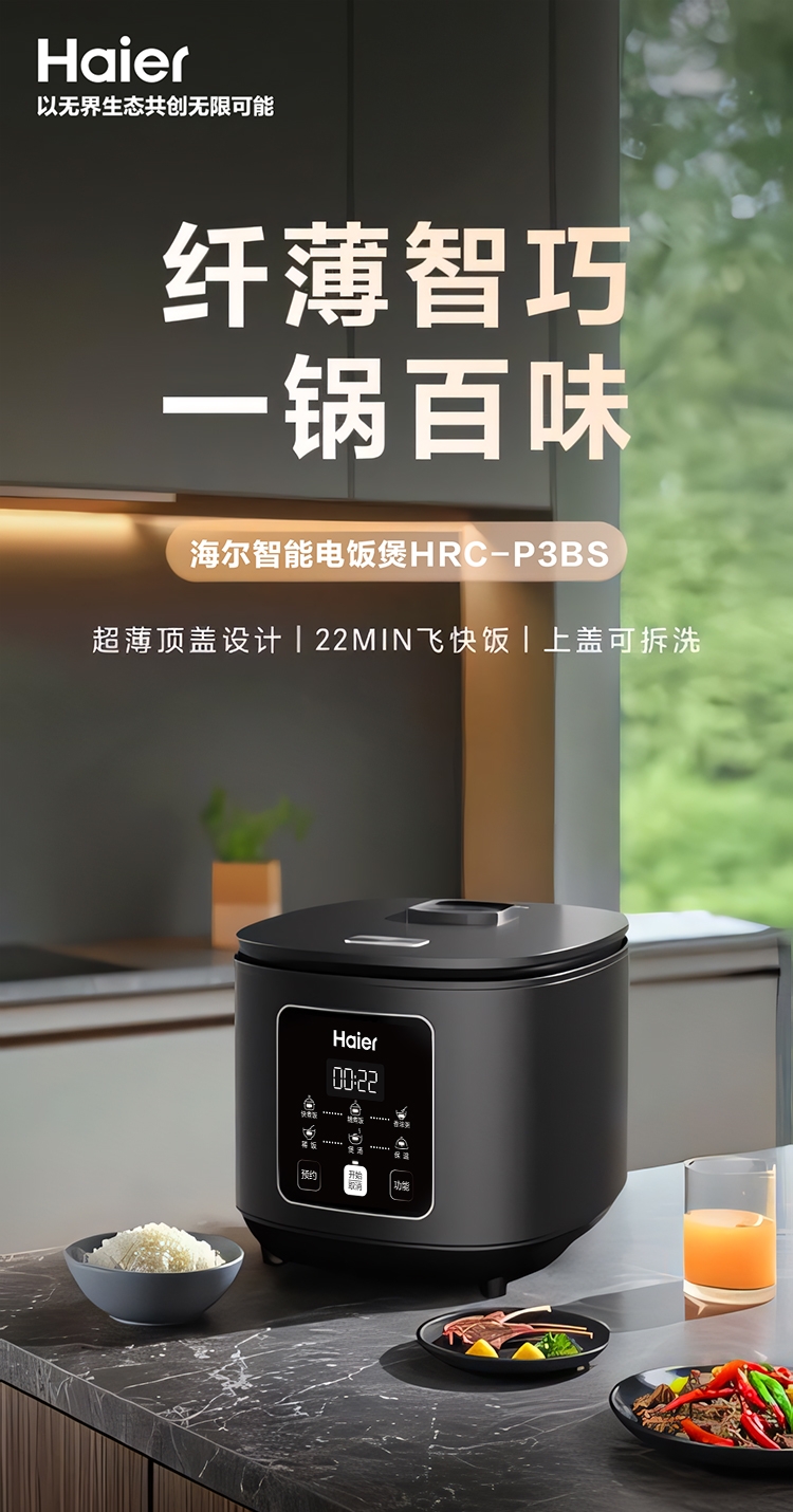 海尔 智能3L纤薄智巧电饭煲HRC-P3BS