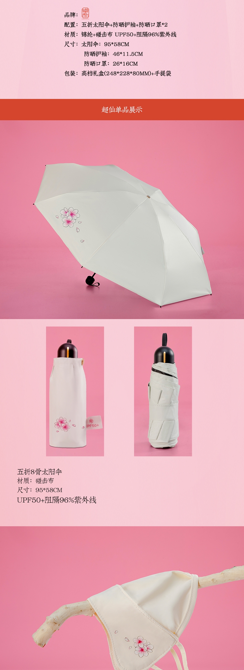 配置:五折太阳伞+防晒护袖+防晒口罩*2