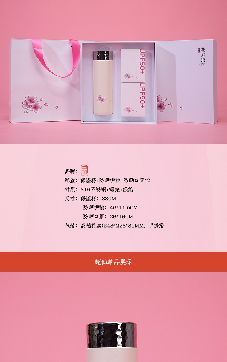 配置:保温杯+防晒护袖+防晒口罩*2