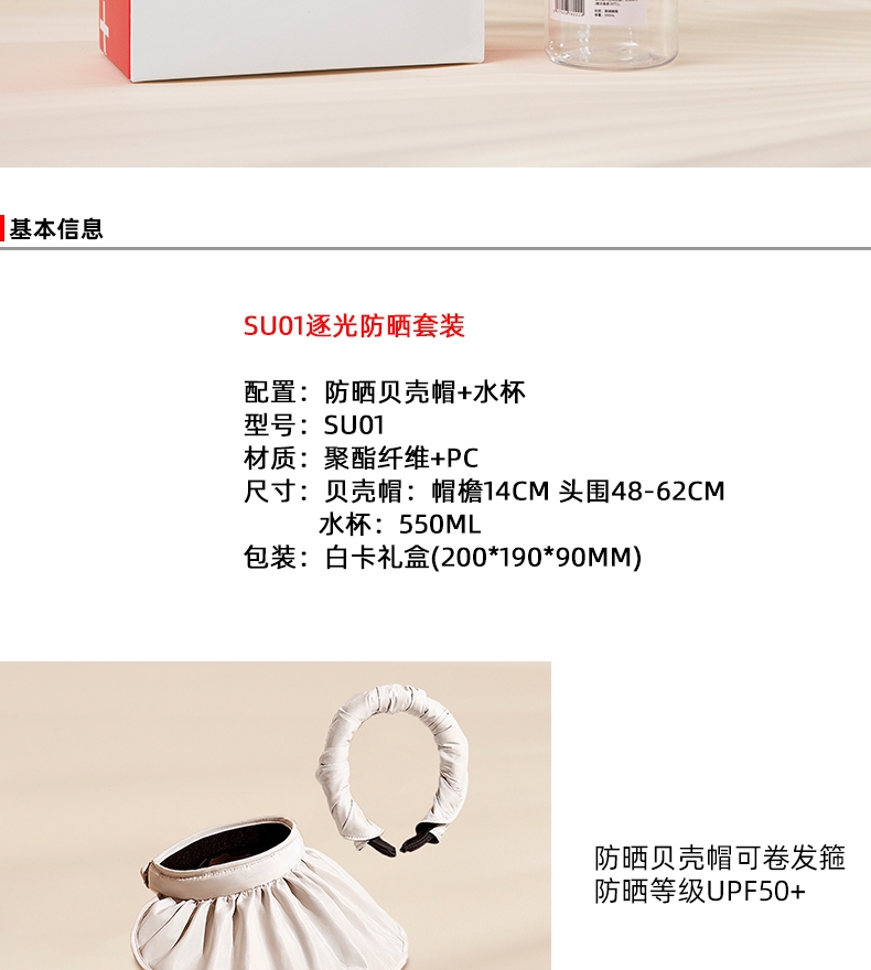 尺寸:贝壳帽:帽檐14cm 头围48-62cm 水杯:550ml
