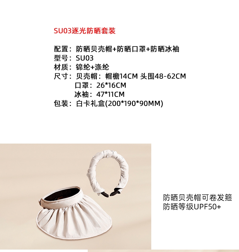 配置:防晒贝壳帽+防晒口罩+防晒冰袖