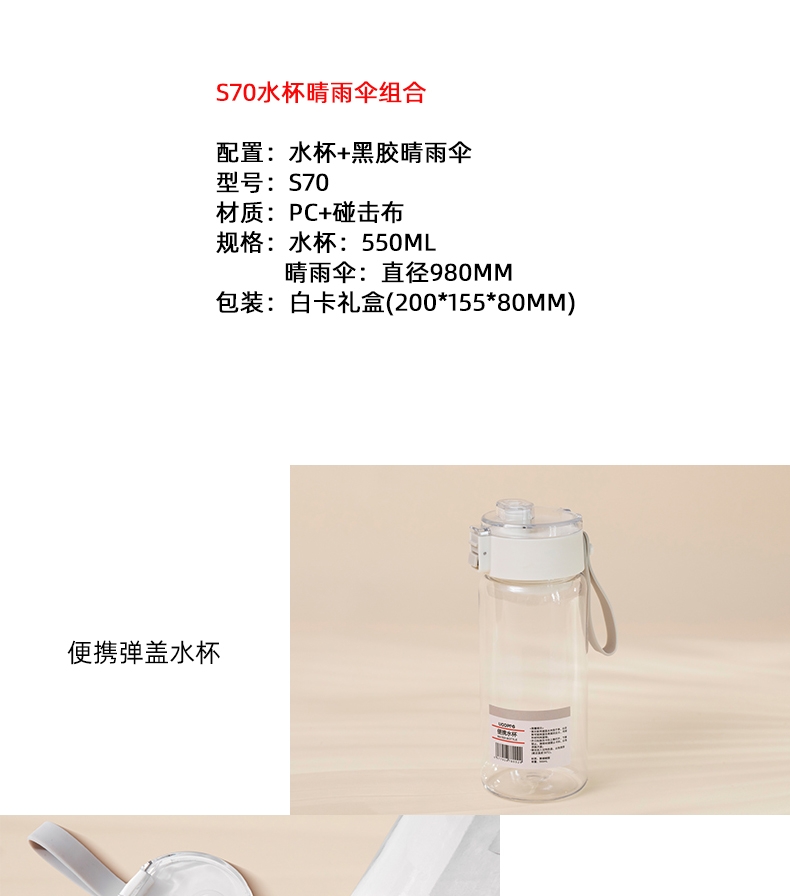 规格:水杯:550ml 晴雨伞:直径980mm