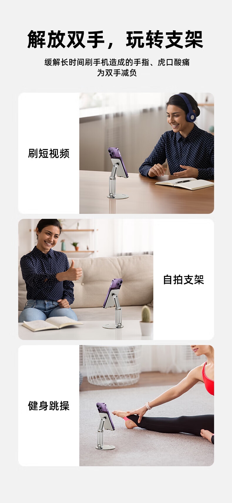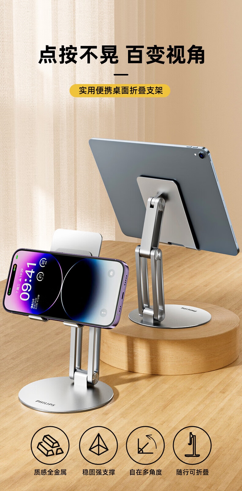 点按不晃 百变视角;全金属材质;折叠易携