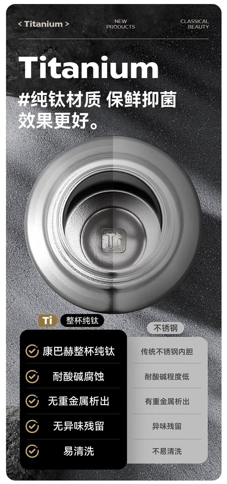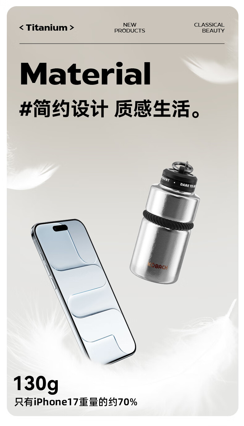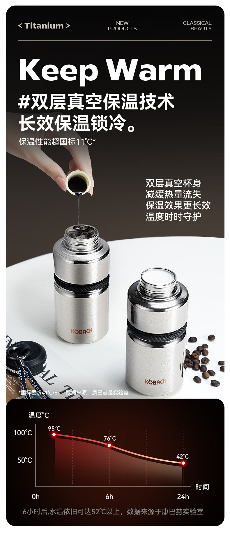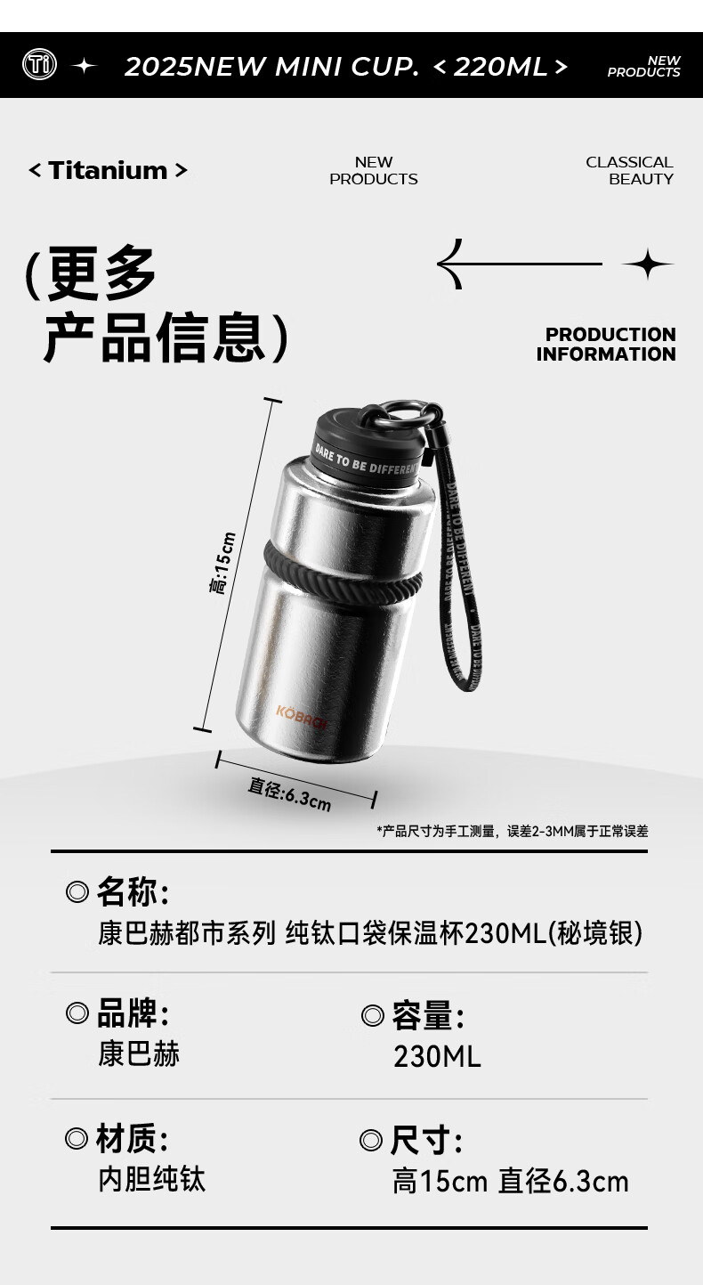 康巴赫 纯钛口袋保温杯230mLKH-B23T01