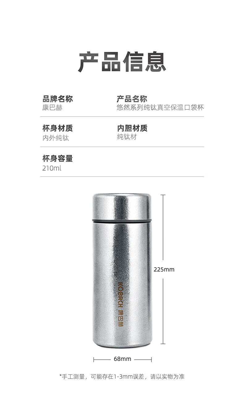 康巴赫 纯钛真空保温口袋杯210mlKH-B21T01