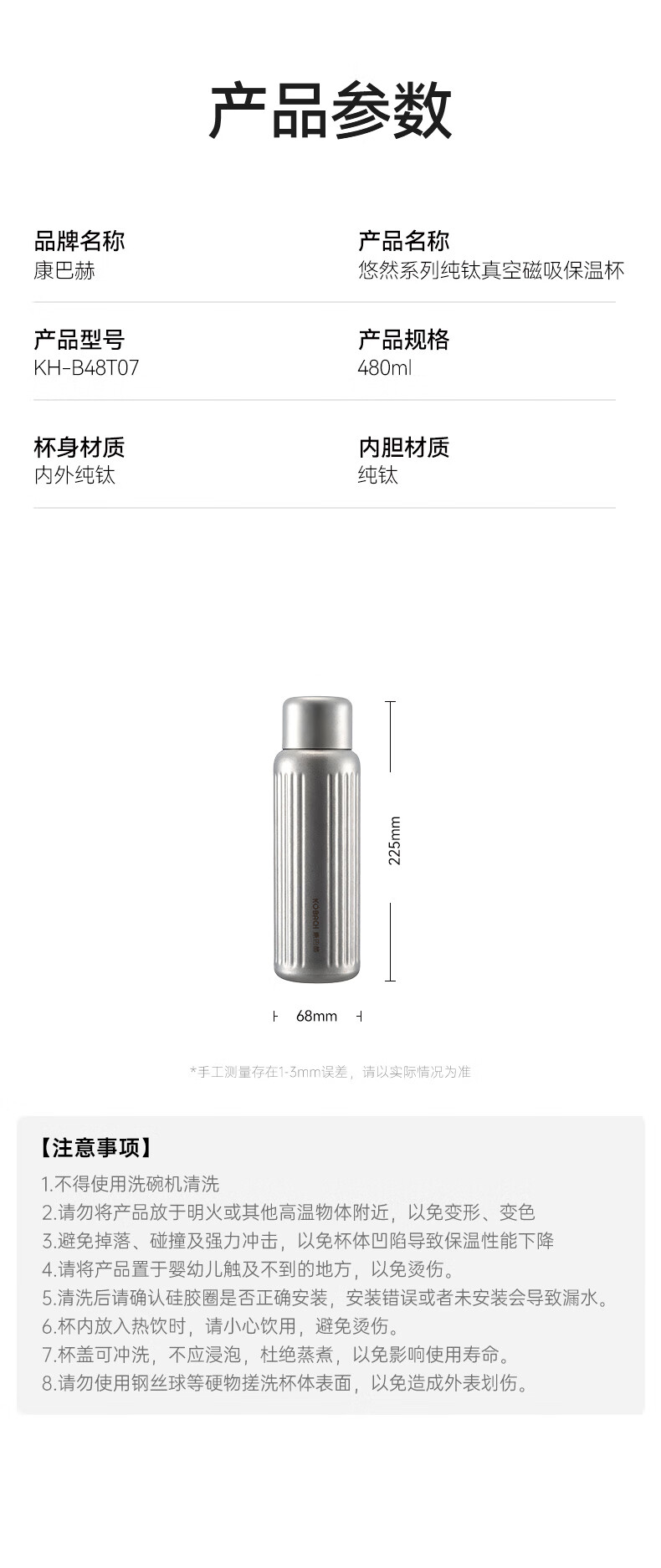 康巴赫 纯钛真空磁吸保温杯480mlKH-B48T07