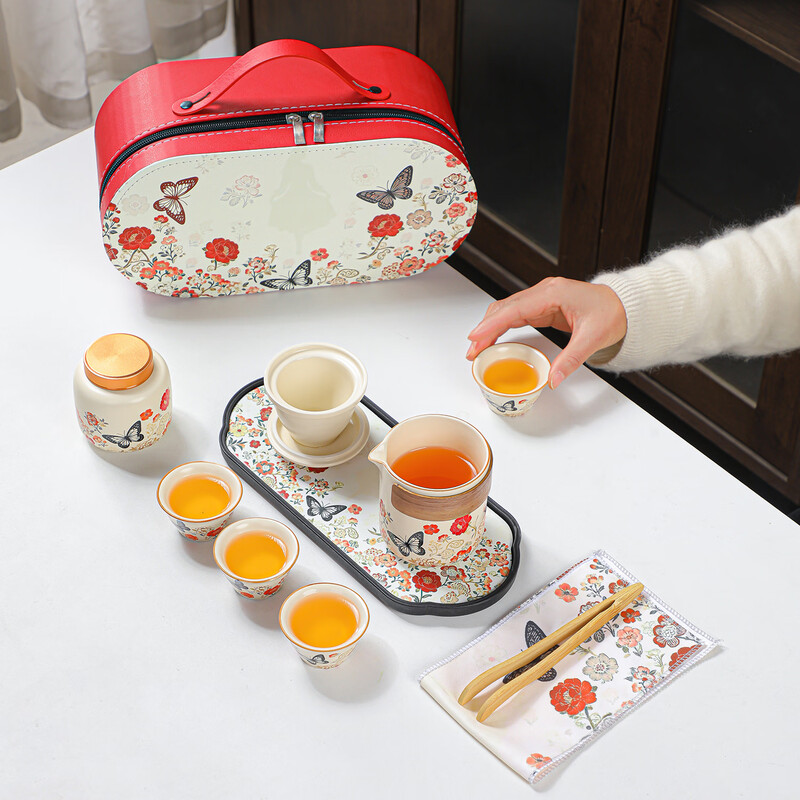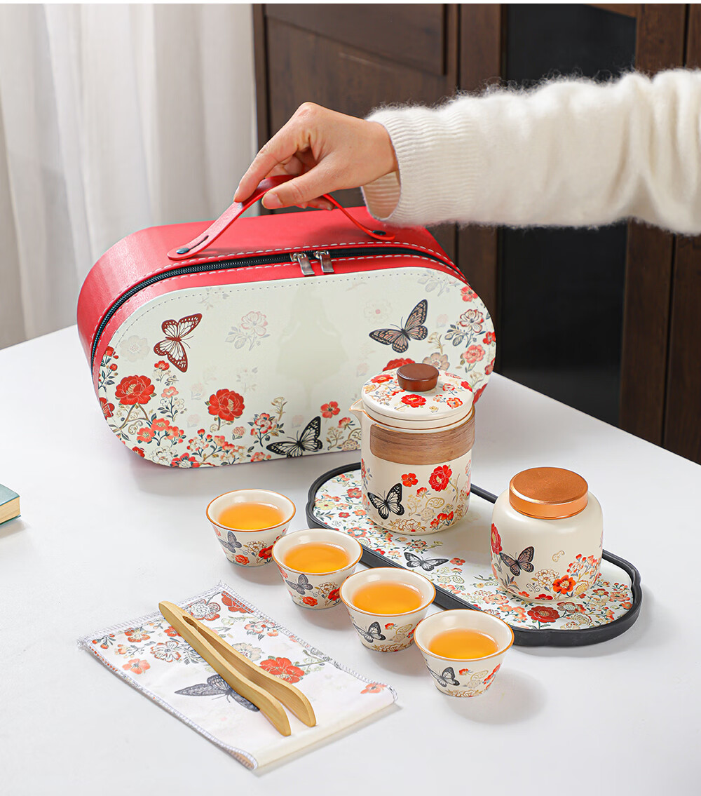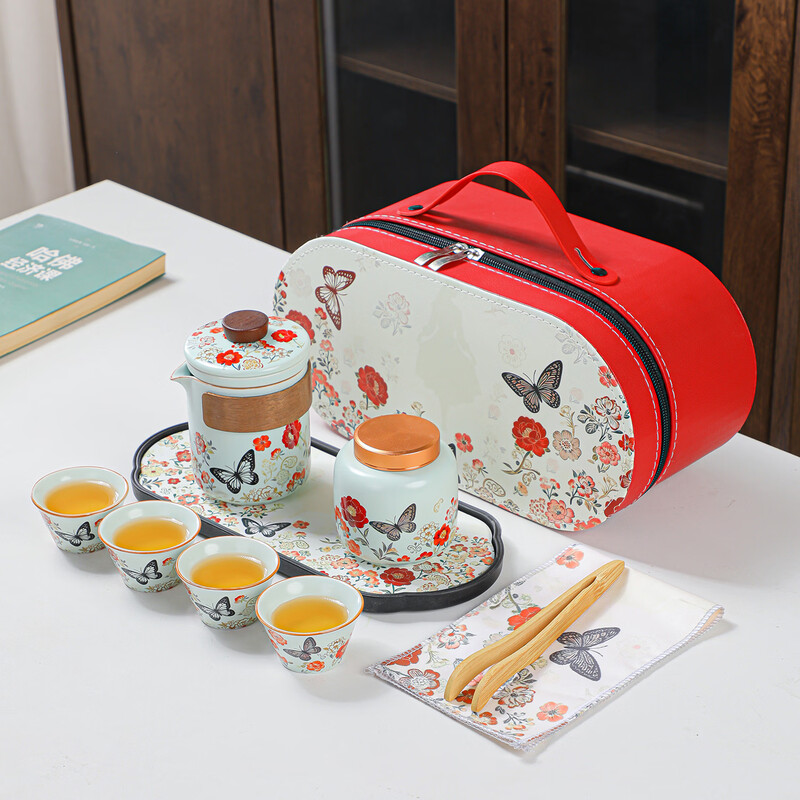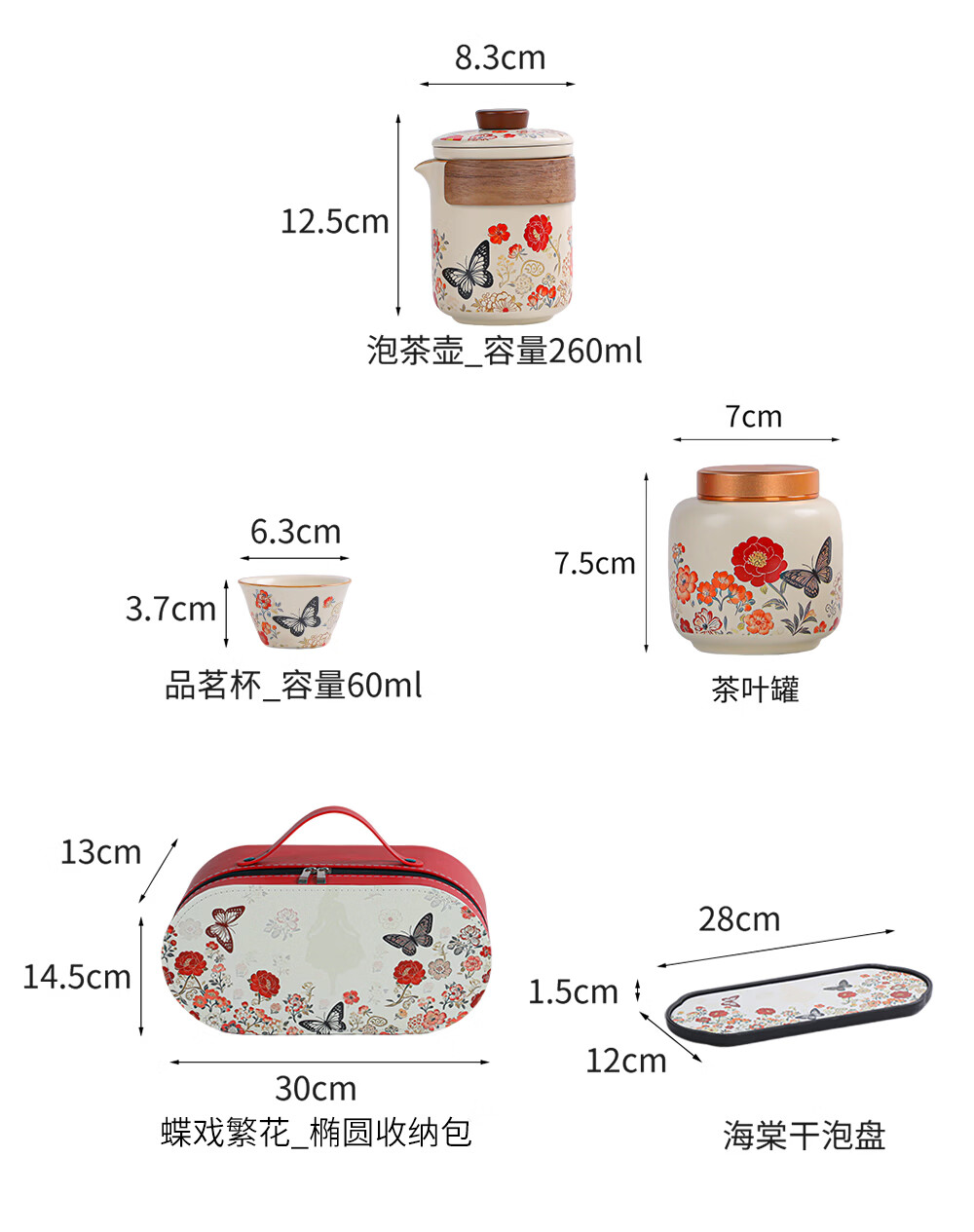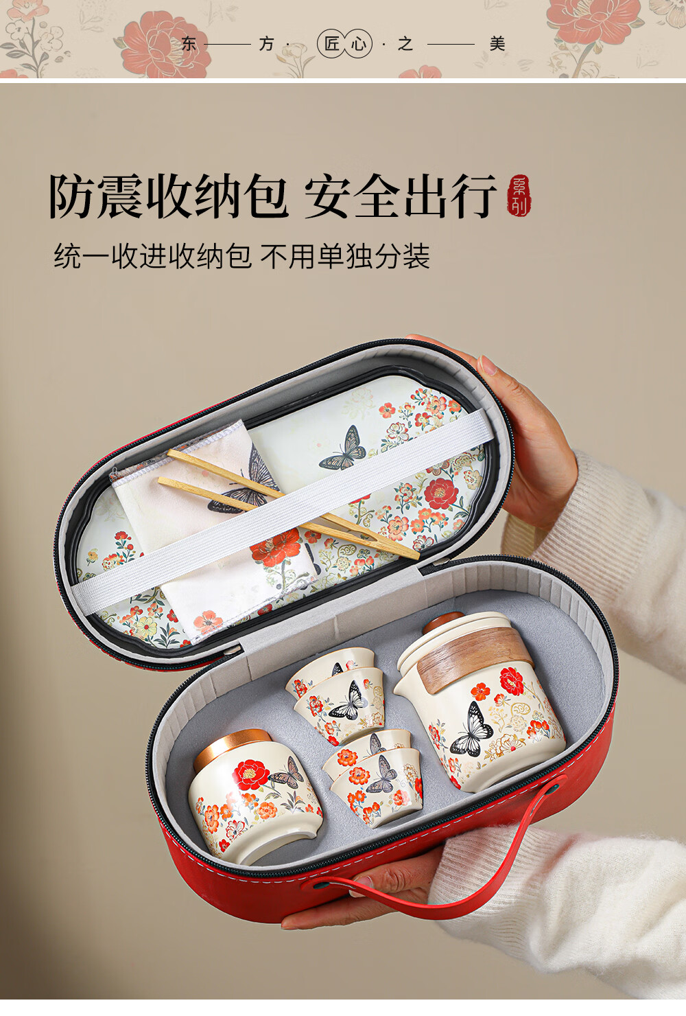 配置清单:一壶四杯 茶叶罐 茶盘 茶巾 茶夹旅行包