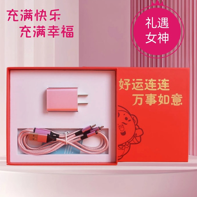 美好寓意 :充满快乐,充满幸福;手机充电头:USB口,方便实用, 3C安全认证。;一拖三数据线:可充电任何手机,数码设备接口。