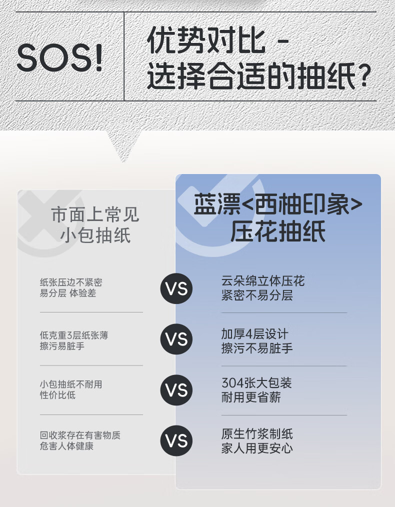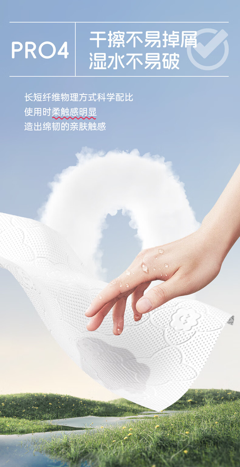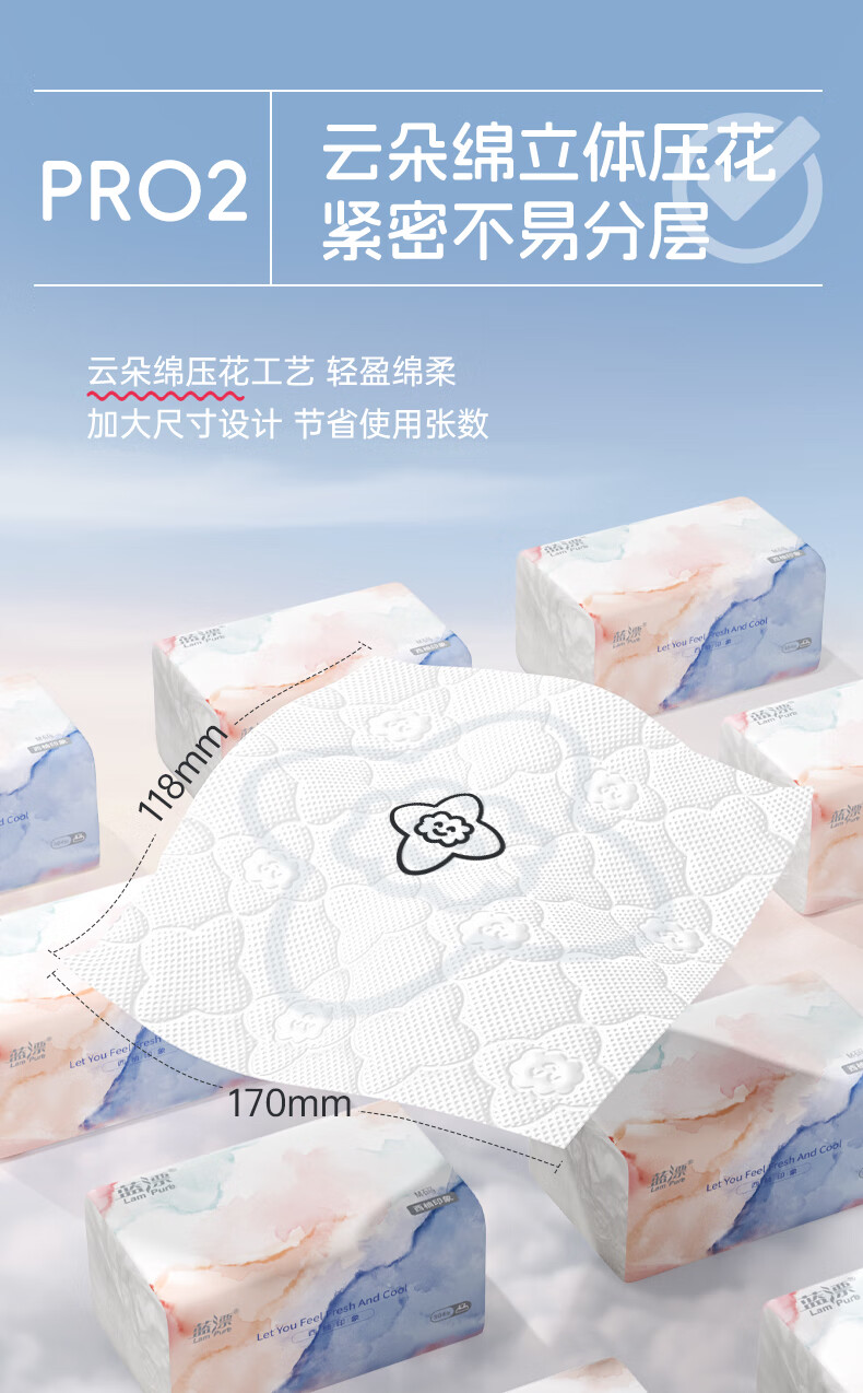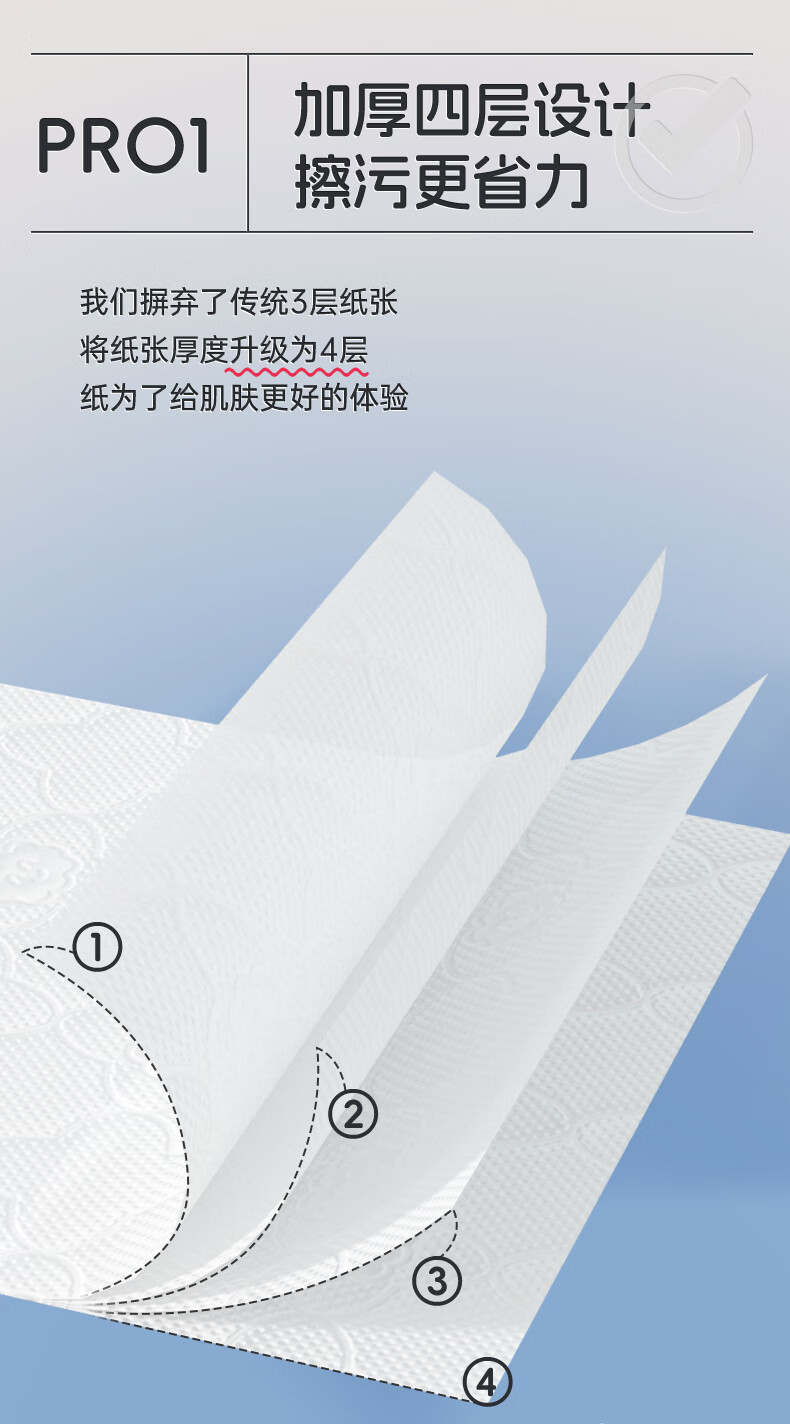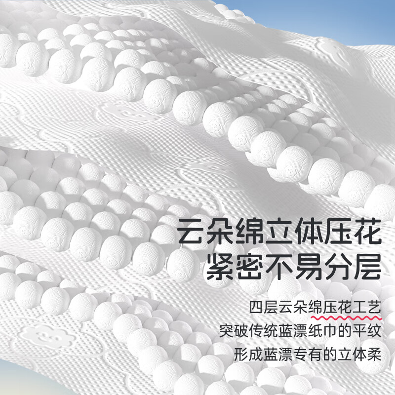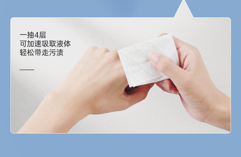 加厚四层设计,擦污更省力;云朵绵立体压花,紧密不易分层;干擦不易掉屑,湿水不易破