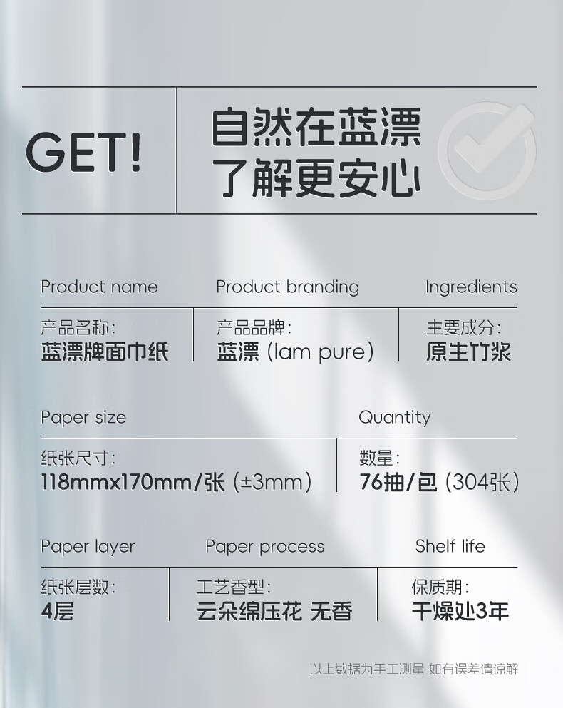 蓝漂 抽纸76抽4包加厚面巾纸LP-29176-A