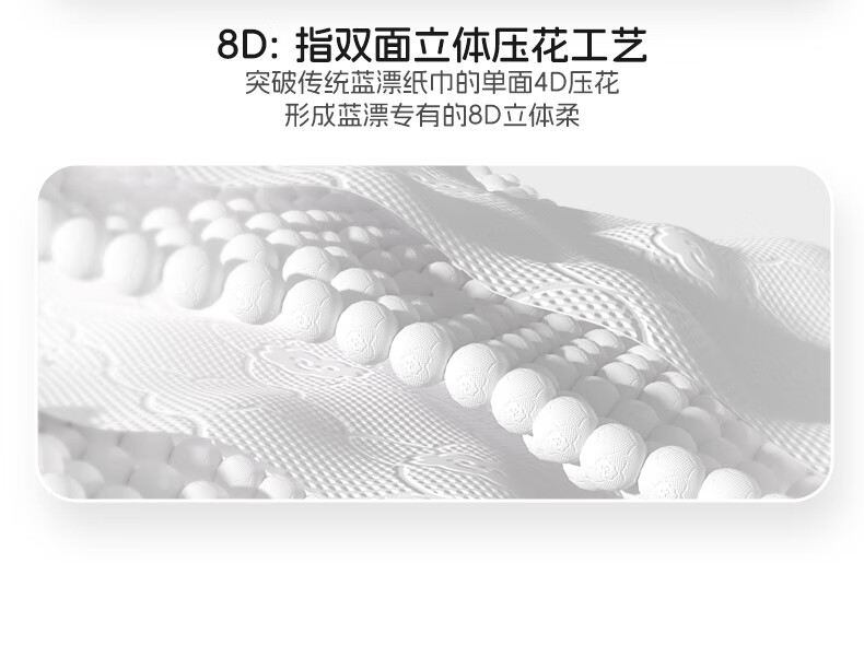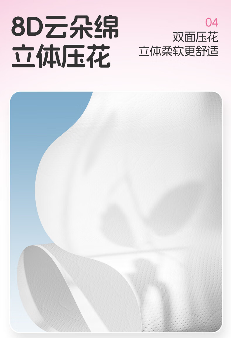 8D云朵绵,立体压花;双面压花,立体柔软更舒适;强力吸水,易擦干净