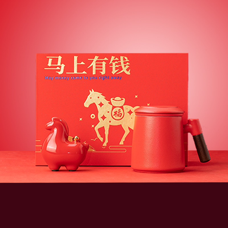紧扣马年主题,"马上有钱"谐音寓意讨喜;摆件与杯子均采用优质陶瓷,细腻温润、耐用易清洁;经典中国红搭配烫金元素,完美契合春节氛围,年味十足;配套精美贺卡,可定制专属祝福,让礼物更有情感价值;作为马年限定产品,具有独特的收藏与纪念意义