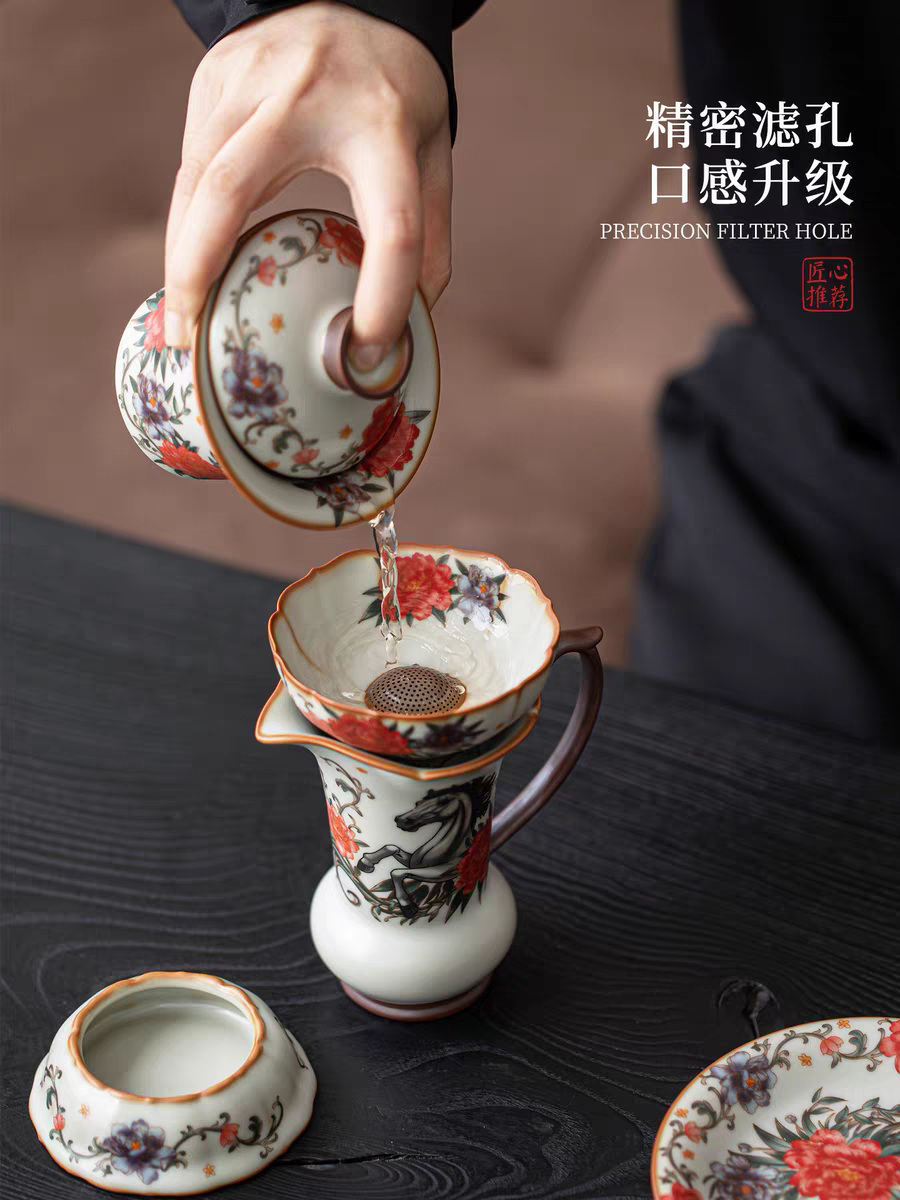 马年开门红马到功成亚黄汝瓷茶具