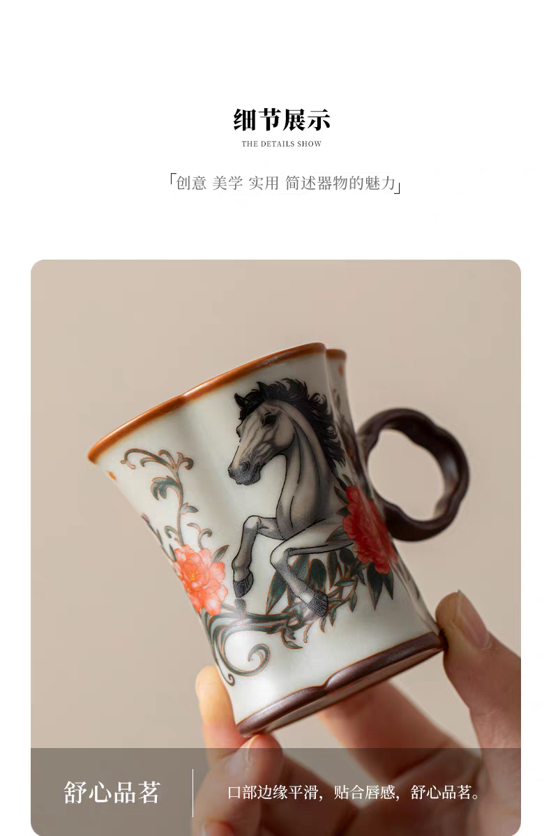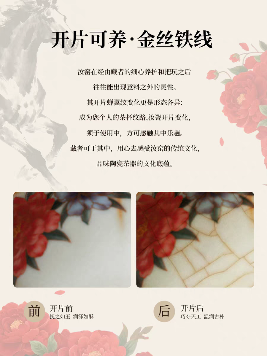 马年开门红礼品,马到功成。内外皆有画面。玛瑙入釉;蝉翼开片,家有千财万贯,不如汝窑一片。亚黄汝瓷;独家专利技术新品,采用高价优质瓷土,紫口铁足,瓷质