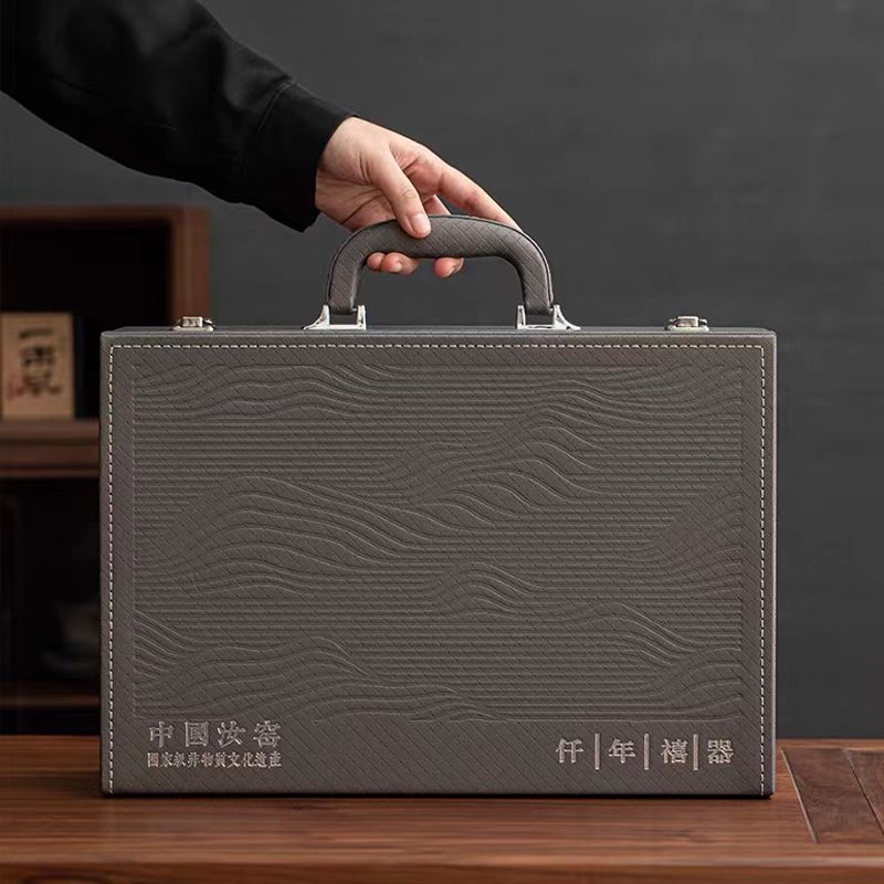 配制:1盖碗 6杯 1壶承 1主人杯 1盖置 1公道杯1茶托1茶漏 1收藏证书 1高档皮箱