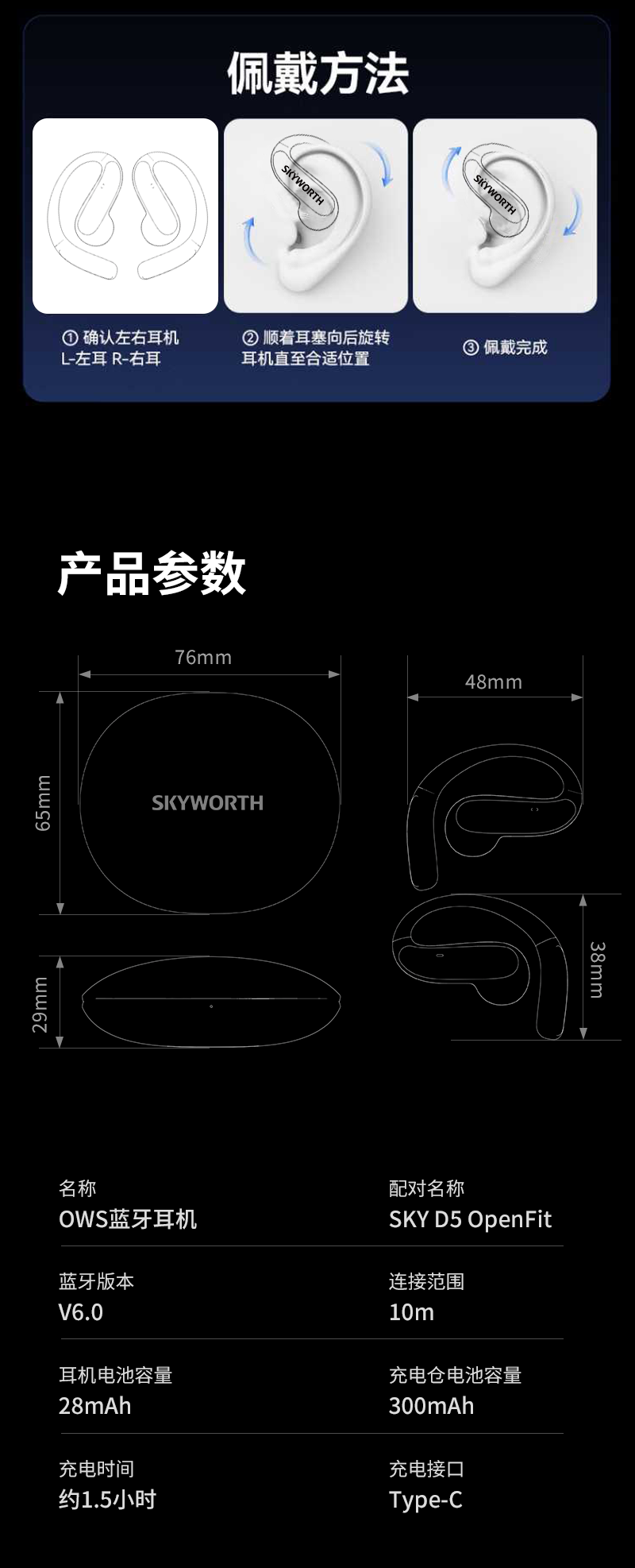 配置清单:耳机× 1、USB线 × 1、说明书 × 1